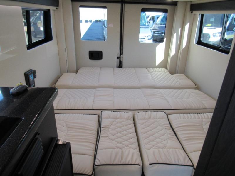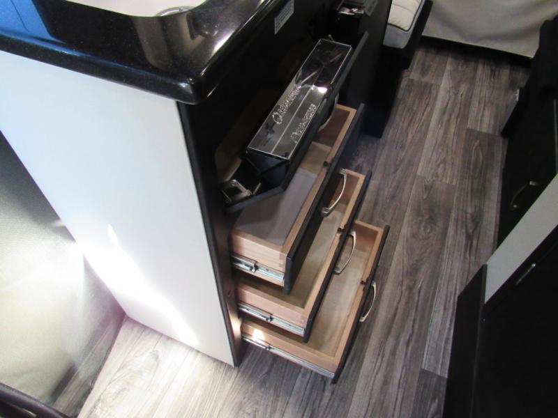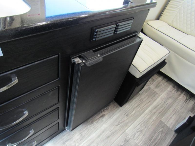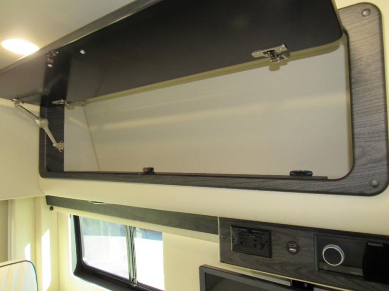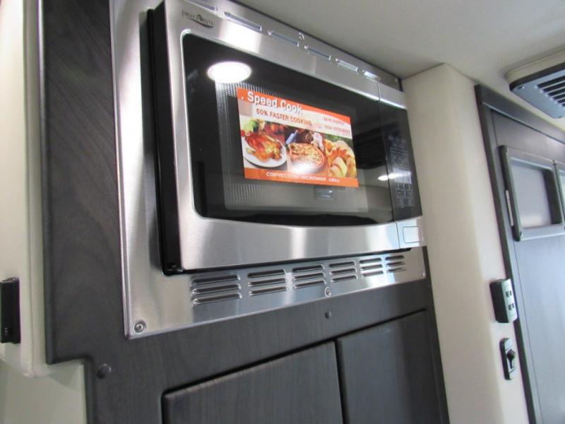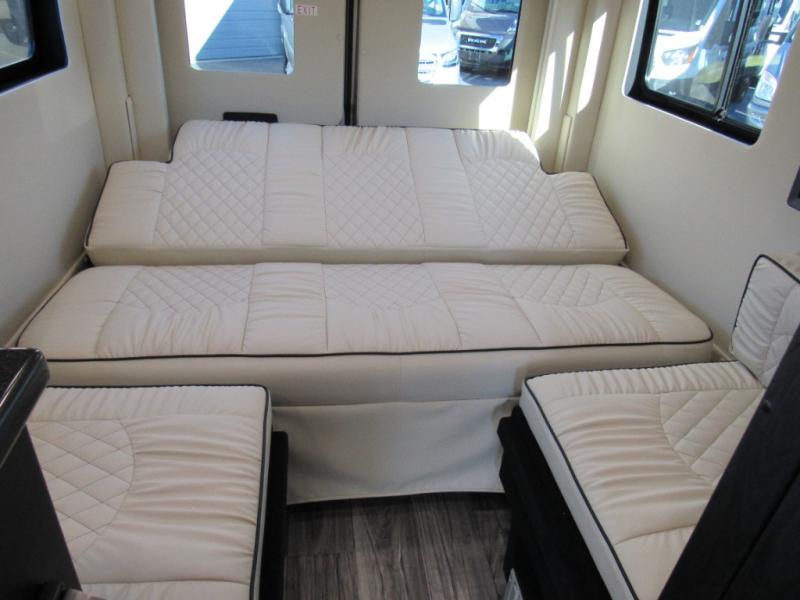 Start traveling like you are driving an SUV yet you will have your own bedding for two to three people once the rear power lounge is set up with the two side sofas for the night. You can watch a movie on the Samsung HD LED Smart TV when you wake up before making breakfast in the convection microwave or on the induction cooktop. You might like to grab a snack from the overhead cabinets instead. And the removable table/dinette will allow you to eat a meal or do some work while sitting comfortably on the leather seating. There is a mid-coach wet bath to stay refreshed and ready for whatever you decide to do next! You might even like to add the Onan 2.2 propane generator option for extra power.
