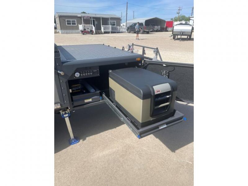 Compact, rugged, versatile, and ready for action with the rapid deployment of the AIR inflation technology, this OPUS folding pop-up camper is easily ready in no-time! You can sleep each night above ground on your own RV queen tent bed and dine at the U-shaped dinette lounge with plush leatherette seating that converts into additional sleeping space if needed. The stainless steel kitchen slide out gives you a four-burner cooktop to make meals, plus you will have a 12V fridge slide out to stow your cold items. There are six windows with screens for optimal air ventilation when camping, and there are several options you might like to add such as the AIR Annex, the remote trailer mover, the ZAMP solar panel, and more!