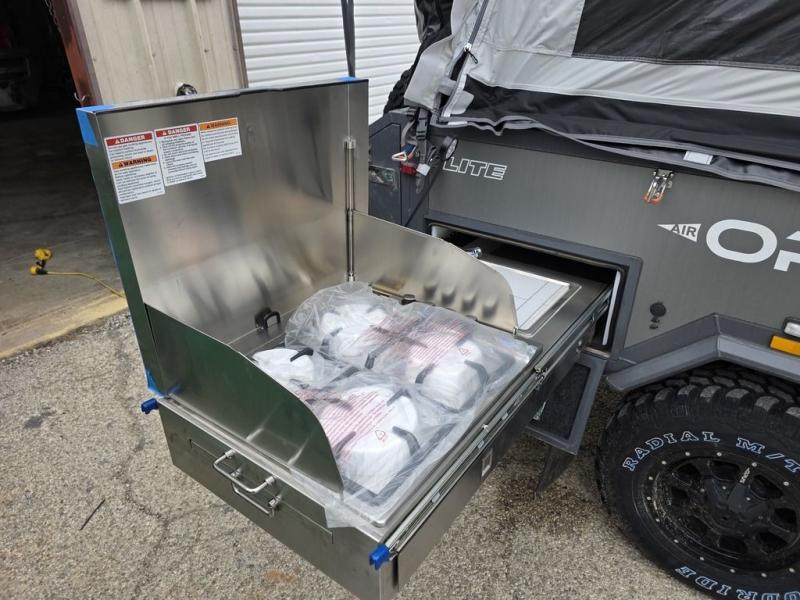 Compact, rugged, versatile, and ready for action with the rapid deployment of the AIR inflation technology, this OPUS folding pop-up camper is easily ready in no-time! You can sleep each night above ground on your own RV queen tent bed and dine at the U-shaped dinette lounge with plush leatherette seating that converts into additional sleeping space if needed. The stainless steel kitchen slide out gives you a four-burner cooktop to make meals, plus you will have a 12V fridge slide out to stow your cold items. There are six windows with screens for optimal air ventilation when camping, and there are several options you might like to add such as the AIR Annex, the remote trailer mover, the ZAMP solar panel, and more!