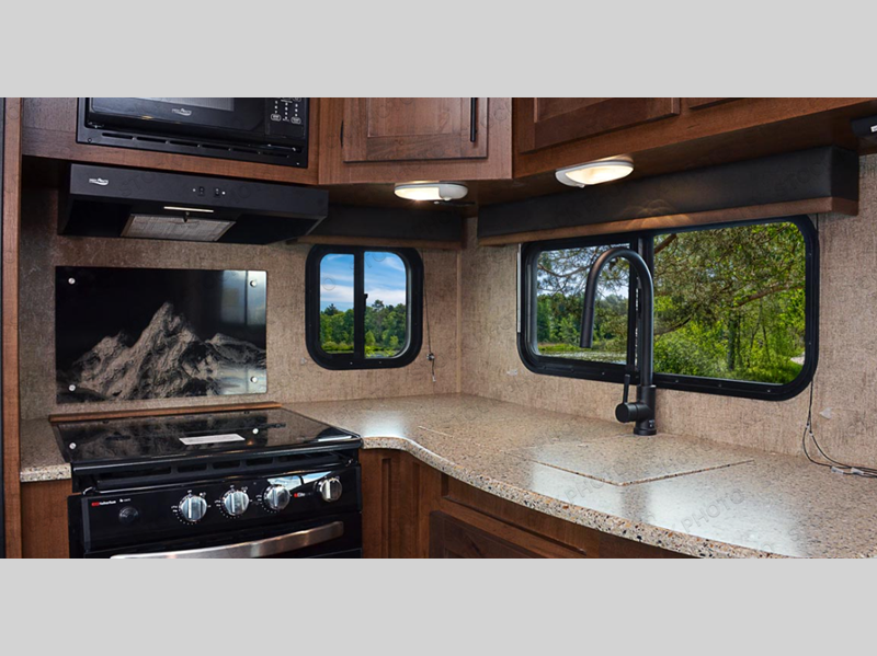 Each Glacier Peak Mountain Series fifth wheel by Outdoors RV is built tough for off-road performance with rugged 2" bonded aluminum frame walls, an integrated A-frame for added strength and ground clearance, and a custom built off-road chassis. You can plan to camp all year long since these fifth wheels are Climate Designed 4 Seasons with features such as, a triple layered four seasons roof insulation, an XL furnace, and a unique heated and insulated holding tank design. There are also off-grid camping features that will allow you to go off the beaten path when the adventure calls for it! Head inside to find residential height countertops, hardwood drawer fronts on all drawers, a Mountain Comfort mattress, plus many more comforts you would expect to find at home!