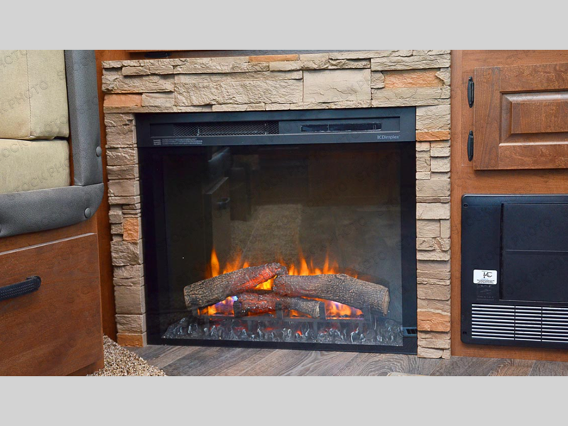 The cook will love this rear kitchen with the views out of the window and the U-shaped counter space to work from, plus having full amenities to make any type of meal. The pantry and refrigerator are next to the residential sofa within a slide out providing more interior floor space and a quick way to grab a snack before using the sofa built-in recliners to relax. There is another slide in this area with a mountain dinette, and both furnishings can provide extra sleeping space when needed. The entertainment center includes a swing-out 50" TV so everyone will have a good view. The front bedroom offers a queen bed to sleep on after a fun day outdoors, plus a wardrobe/linen slide giving both the bedroom and bathroom more space.
