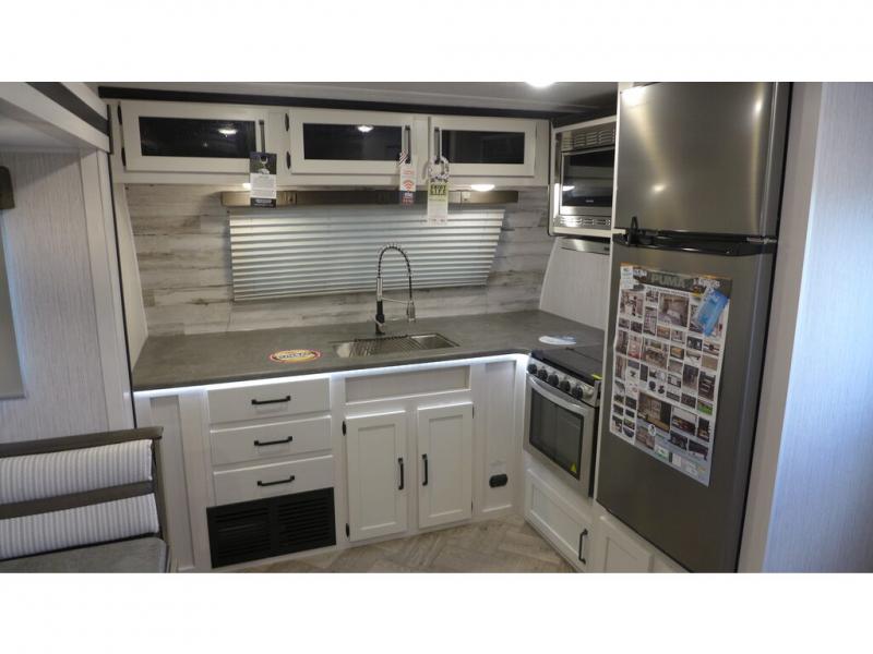 If you're looking for family-fun adventure then you need one of these Palomino Puma fifth wheels, travel trailers, or toy haulers! They are built rugged, easy to tow, and jam packed with features. The Darco wrapped underbelly will protect your units vitals through every season and the AlphaPly roofing membrane covers it. They also have super lube axles and a powder coated frame. Their luxurious interiors feature a spice rack and built-in knife rack in the kitchen, USB charging ports to keep your electronics at 100%, and high density foam mattresses for a good night's rest. The required Advantage package comes with night roller shades for privacy at night, two outside speakers to crank up the tunes while you play cornhole, and an outside shower to keep the dirt outside where it belongs, plus so much more!