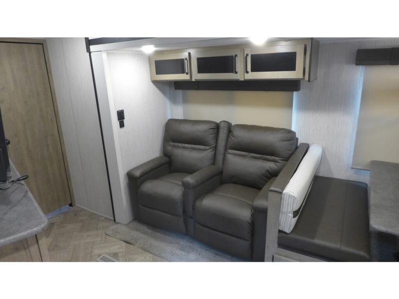 If you're looking for family-fun adventure then you need one of these Palomino Puma fifth wheels, travel trailers, or toy haulers! They are built rugged, easy to tow, and jam packed with features. The Darco wrapped underbelly will protect your units vitals through every season and the AlphaPly roofing membrane covers it. They also have super lube axles and a powder coated frame. Their luxurious interiors feature a spice rack and built-in knife rack in the kitchen, USB charging ports to keep your electronics at 100%, and high density foam mattresses for a good night's rest. The required Advantage package comes with night roller shades for privacy at night, two outside speakers to crank up the tunes while you play cornhole, and an outside shower to keep the dirt outside where it belongs, plus so much more!