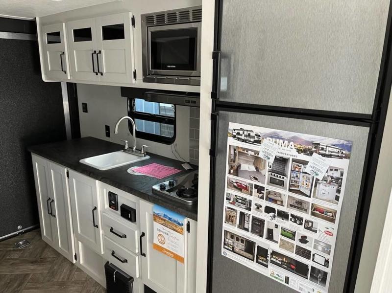 With any Puma Ultra Lite travel trailer or toy hauler by Palomino, you will experience a lighter weight RV that is eco-friendly and offers great fuel efficiency with maximum towability with your own crossover vehicle and smaller SUV. The exterior offers an AlphaPly roofing membrane and a Darco wrapped underbelly for durability and years of use, a power tongue jack for easy setup, a Super Lube axle, a front diamond plate to protect against road debris, front and rear stabilizer jacks, plus solar and WiFi prep. Inside, there is LED ceiling lights, Beauflor linoleum for durability and easy cleanup, a decorative kitchen backsplash, contemporary hardware, light and bath fixtures for style, a divided silverware drawer for organization, and a 78" interior height.
