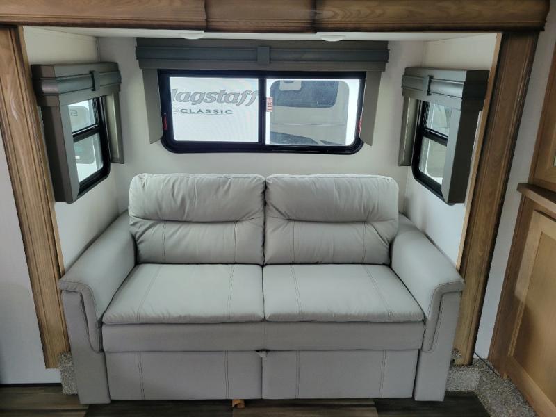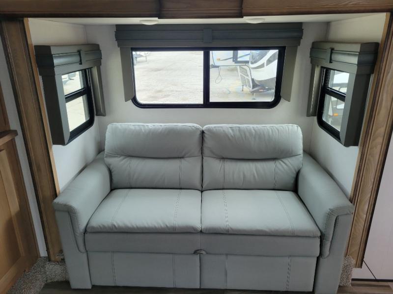 More luxury and more value is what you will find in each one of these Prime Time RV Sanibel fifth wheels! The Extreme Thermal package allows you to extend your camping season by including heated, enclosed water lines, an enclosed underbelly, a heated pass-through storage, and a heated universal docking center. You can keep the party going with the exterior speakers, the coax TV connection and a 110V outlet, plus USB ports in the basement storage. Each model includes an electric awning with LED lights, DOT approved deep tint safety glass, and a "E-Z FLEX" rubberized suspension to provide smooth towing on tougher roads. Inside, you will enjoy shaker style interior doors, a Furrion residential cooktop and oven, roller shades throughout, and "Atrium" dinette windows to let sunlight in for an inviting space. Come find the model that fits your needs today!