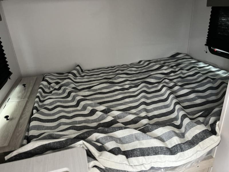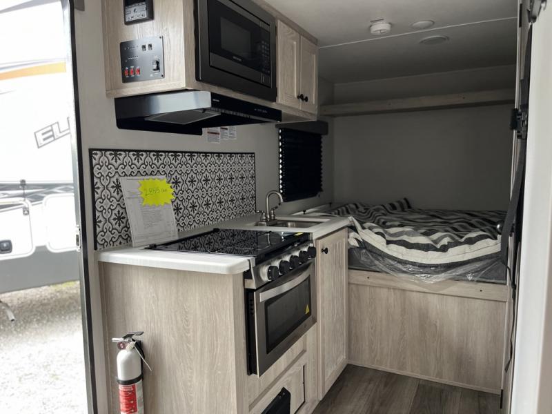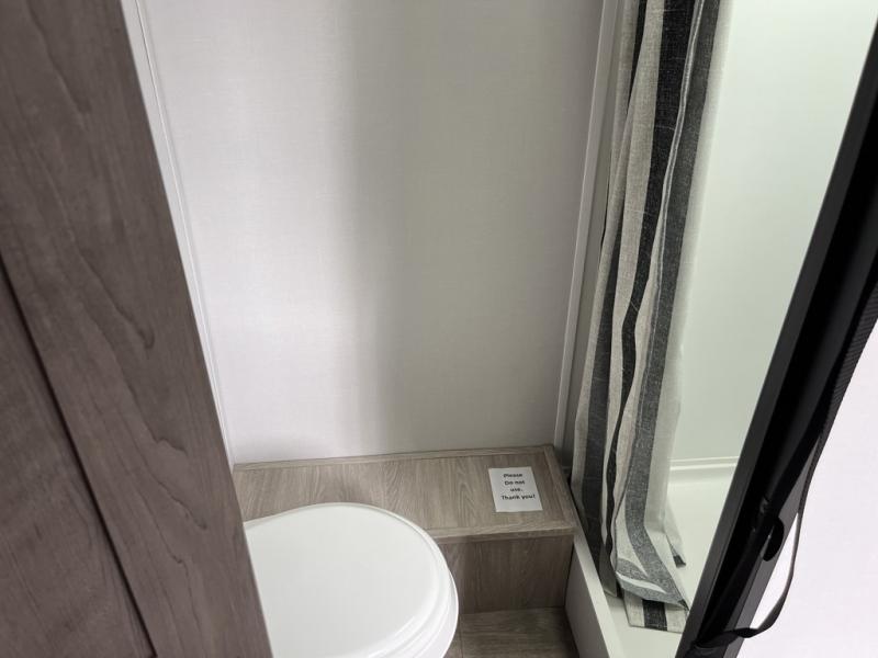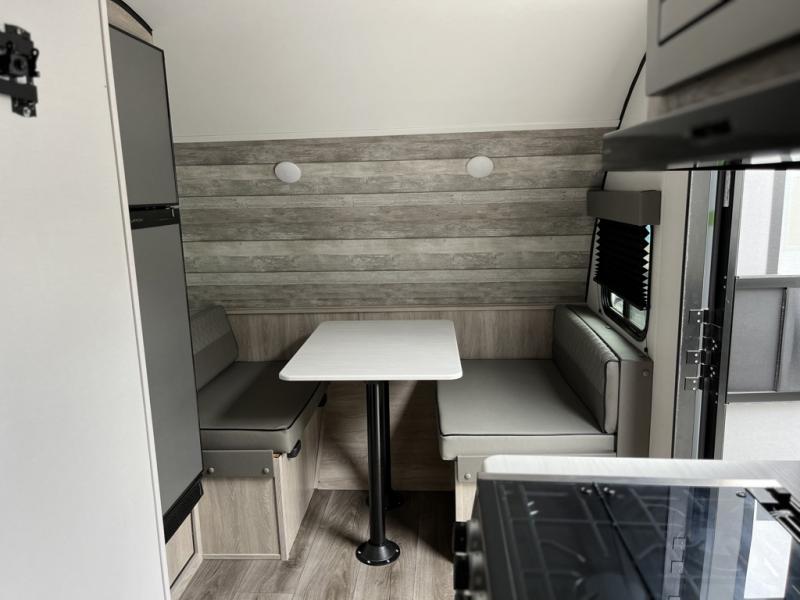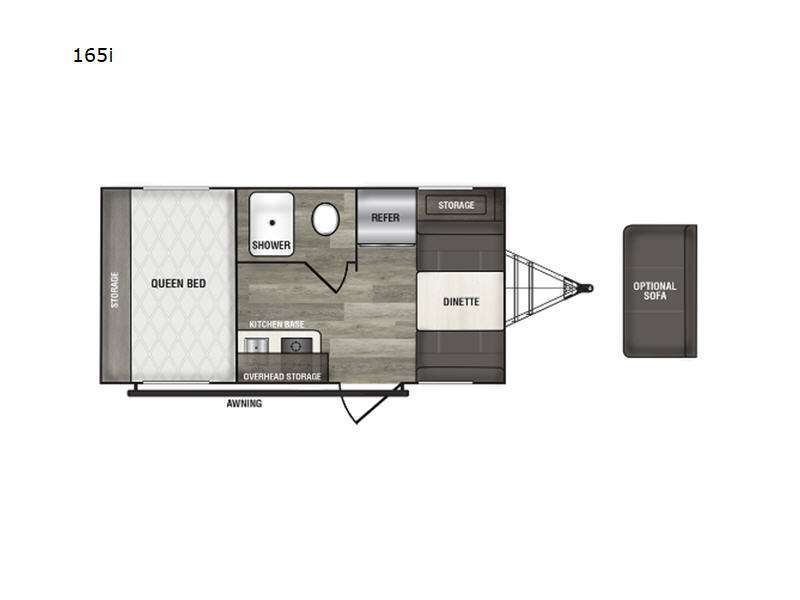 Comfort is found in this single axle travel trailer for three. You can prepare your own meals each day in the kitchen, and dine together at the booth dinette. If you'd rather have a sofa with a table, you can add that option in place of the dinette. There is a private toilet and shower for you to freshen up each day, and the rear 60" x 76" RV queen bed will make you feel right at home. No more sleeping on the floor!