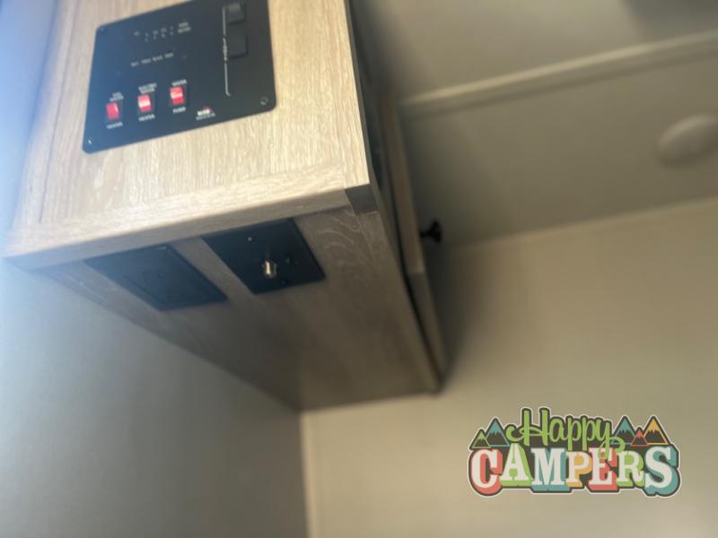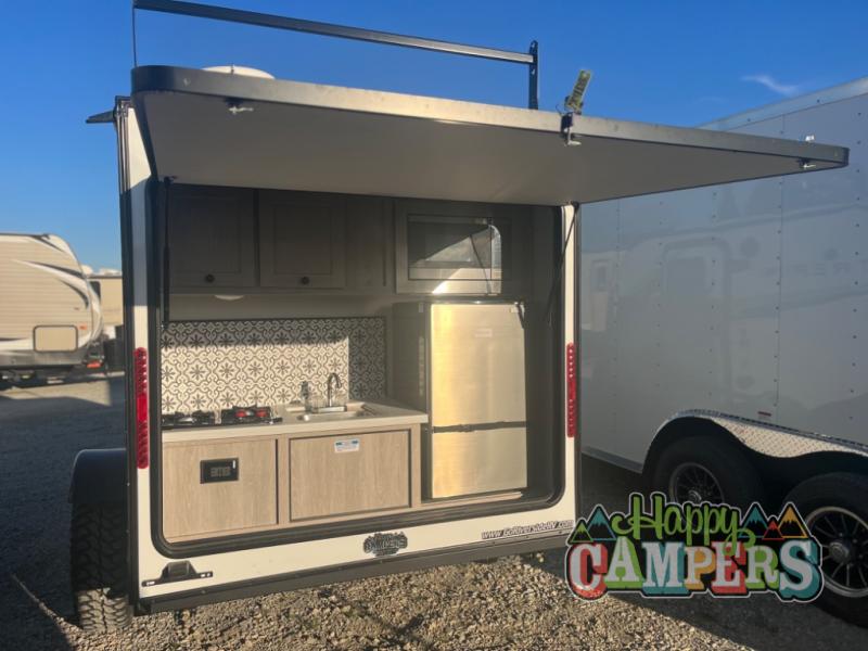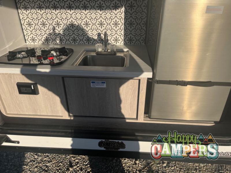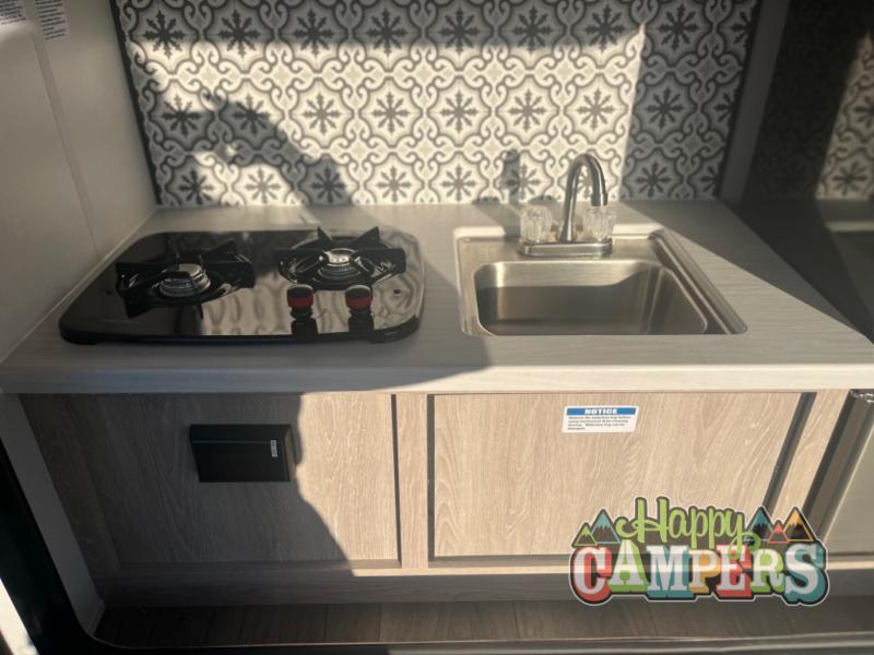 This model is perfect for first time RVers or seasoned campers alike. You won't have to sleep on the hard ground since this model includes a sofa, and your clothes can be stored in the wardrobe. There is also a shelf/front storage for additional belongings. The outside kitchen includes a two burner cooktop, a refrigerator, plus a microwave for quick meals. Get started today on your next big adventure in this lightweight travel trailer!