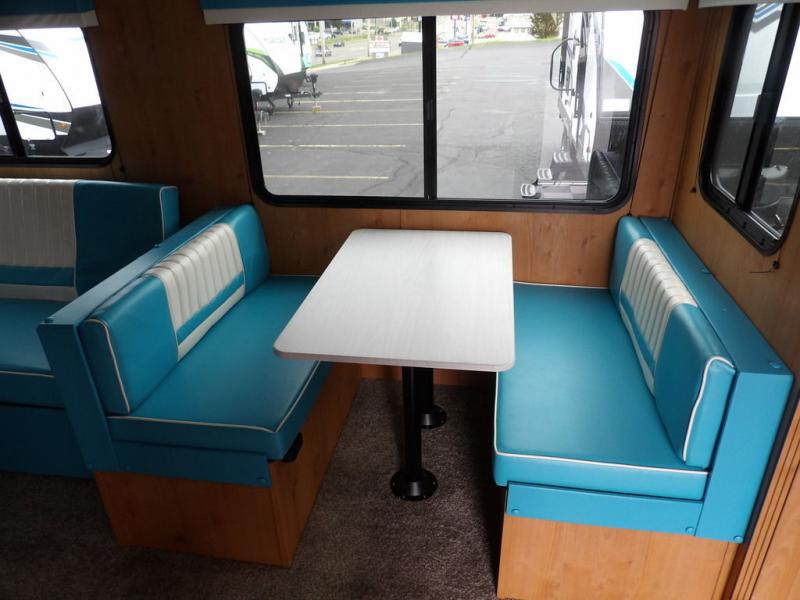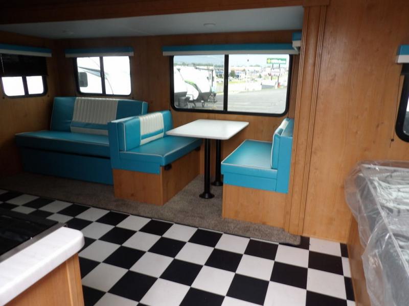 Each Retro travel trailer by Riverside RV will take you back in time with its vintage look, but will still impress you with its modern comforts. The double welded all-aluminum cage and powder coated chassis provide durability, along with the PVC roof membrane and diamond plate rock guard. You'll enjoy indoor and outdoor speakers, USB ports for your electronics, plus an AM/FM/Bluetooth stereo to play your favorite tunes. Each model also includes front and rear stabilizer jacks, electric brakes, a high speed roof vent, plus a 13,500 A/C to keep you cool during the hot summer camping months.
