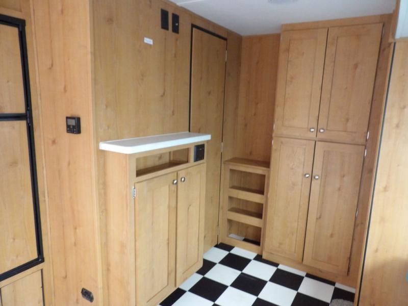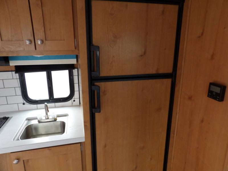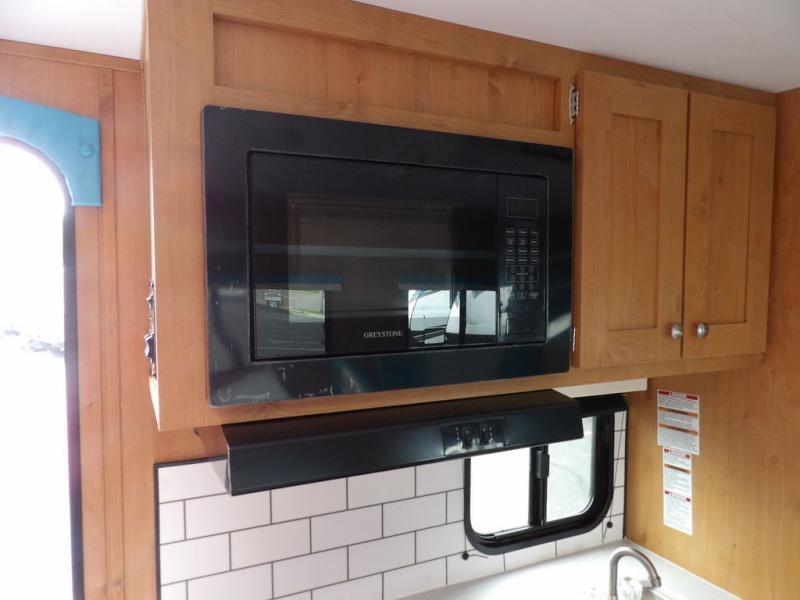 Discover new places with this travel trailer! It features a front 60" x 76" queen bed to lay your head on each night with a shelf and a shirt closet for your clothes. You can prepare your best home cooked meals with the three burner cooktop and the refrigerator then eat them at the booth dinette. If you stuffed your belly too full then relax on the sofa and watch a movie with the entertainment center if you've brought a TV until you're ready to get back outdoors. Rinse the sand out of your hair with the shower in the rear corner bathroom!