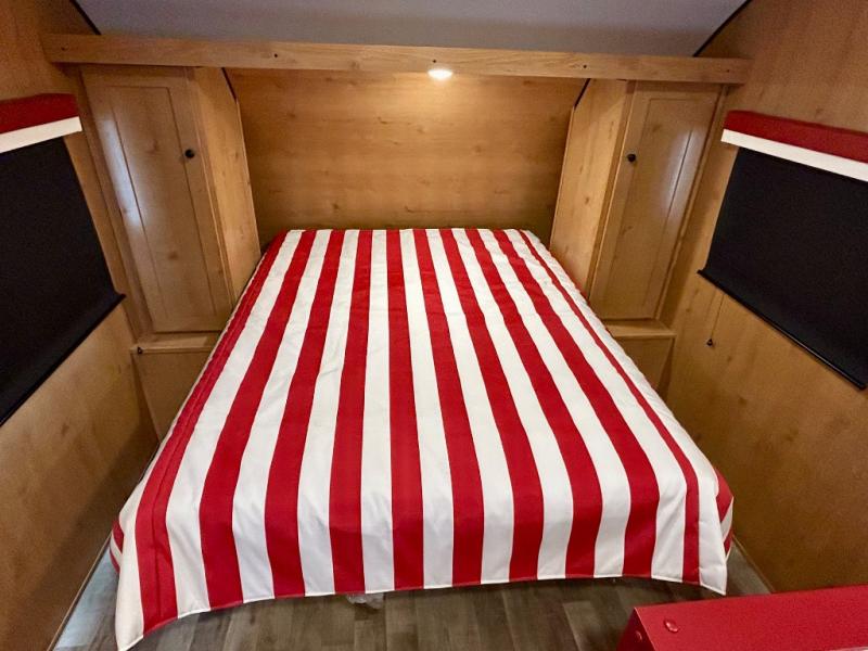Start camping the best way with this travel trailer! As you enter the unit, you will notice the rear corner bathroom which has a radius shower to freshen up in each morning. Eat meals, play games, and even sleep on the booth dinette with an entertainment center next to it for your enjoyment. The fully equipped kitchen not only has a 12V refrigerator, but also a three burner cooktop so you can cook more things at once. When you're ready to get a good night's rest, head to the front 60" x 76" queen bed with overhead cabinets to store your books or other necessities!