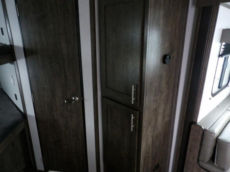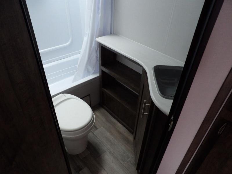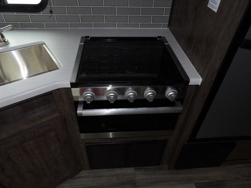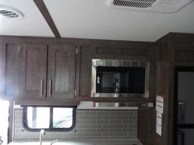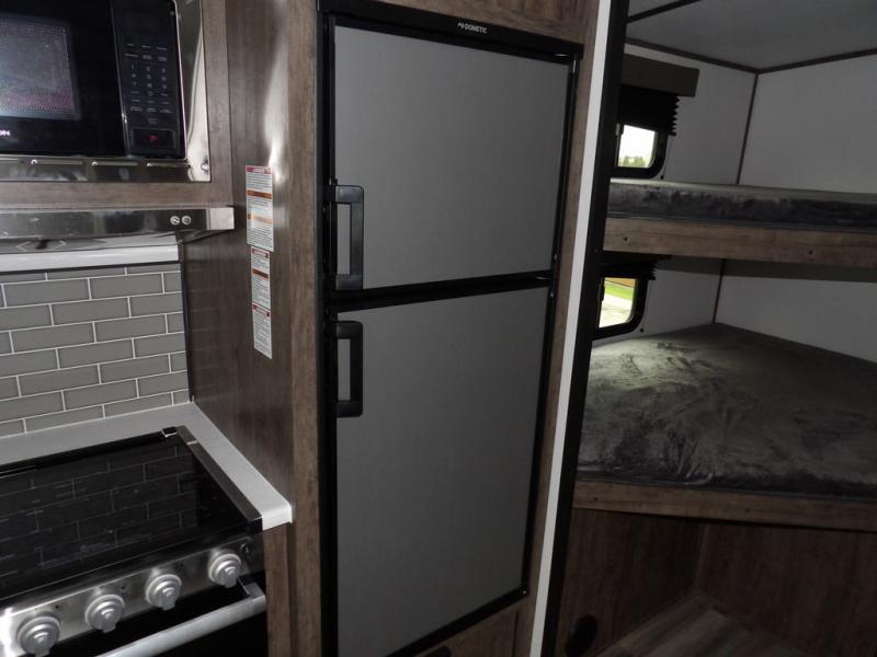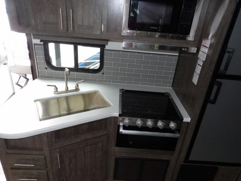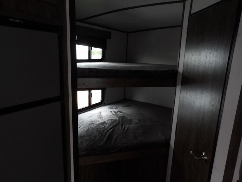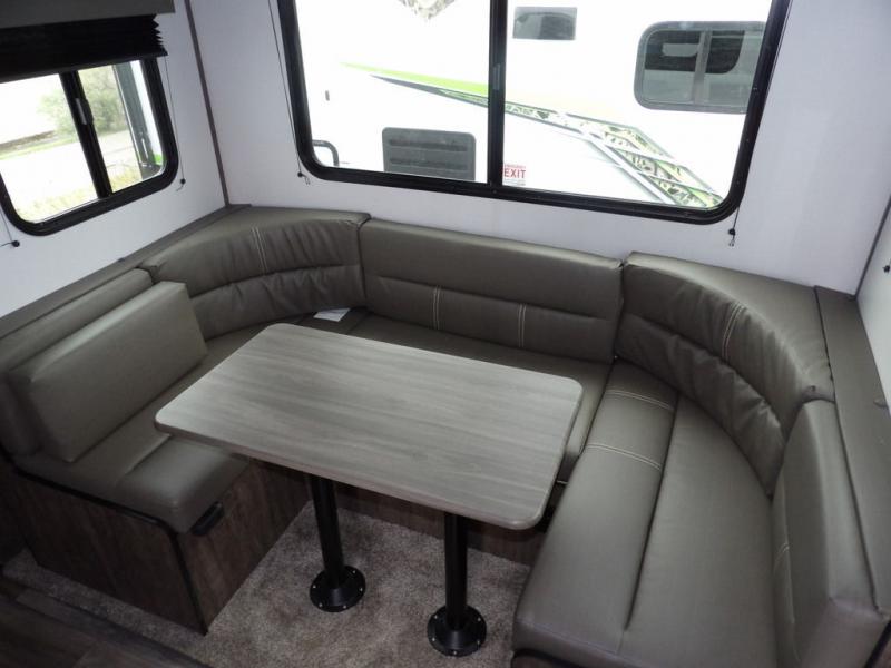 The camping lifestyle is better when you can invite more people along, and this model allows you to do just that! There are double-size bunks for the kids or your guests, and an RV queen bed in the front private bedroom. Additional guests can sleep on the U-shaped dinette slide when it's not being used for dining or game night. There is a full bath on board for your convenience and an interior kitchen the chef is sure to love. But they may love the outdoor kitchen even more!