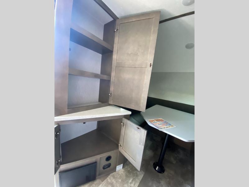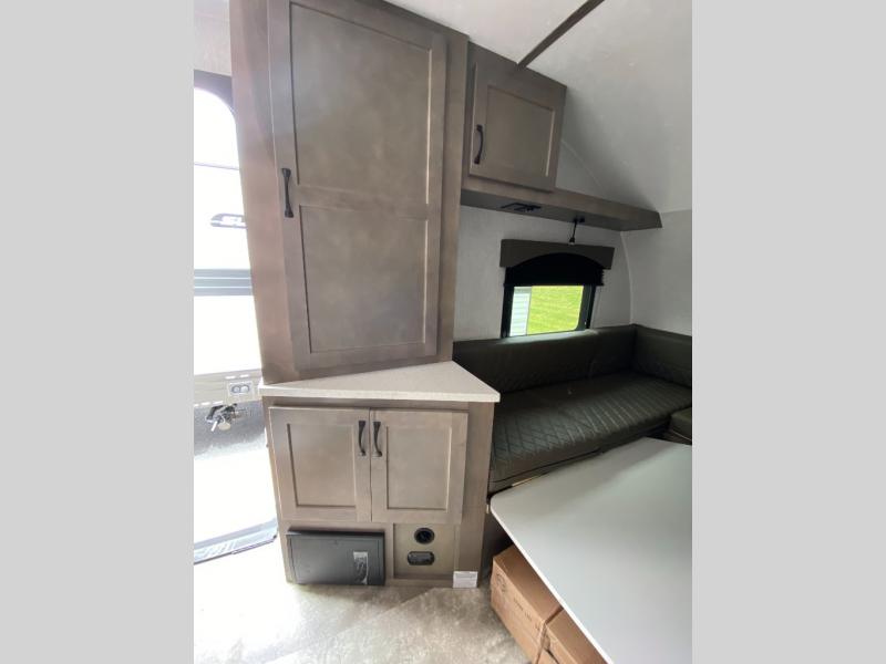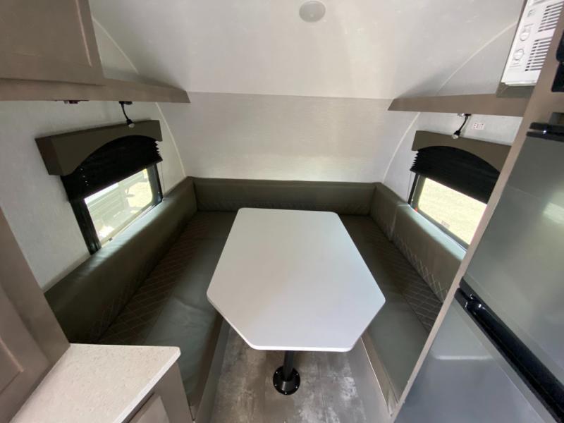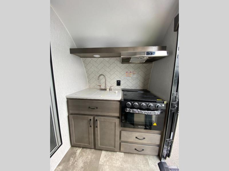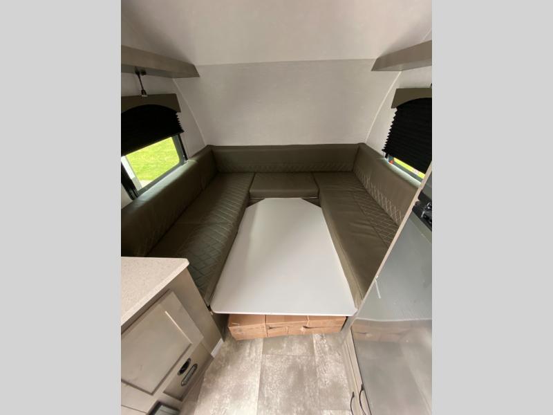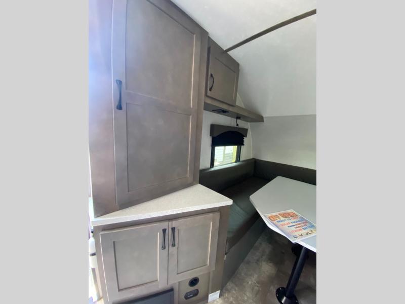 The Volt 1200 is a great choice for a lightweight travel trailer! With full solar power, you can go off-grid and get away from it all. This floorplan includes a U-shaped dinette that can convert to a bed. A full kitchen offers a sink, microwave, three-burner cooktop with oven, and a 12V double door refrigerator. Solid surface countertops and residential cabinets with solid wood stiles and cabinet doors look great and are easy to care for. Step outside and spend time under the electric legless awning, and bring the portable Bluetooth speaker with you.