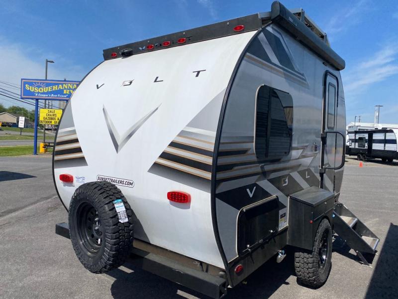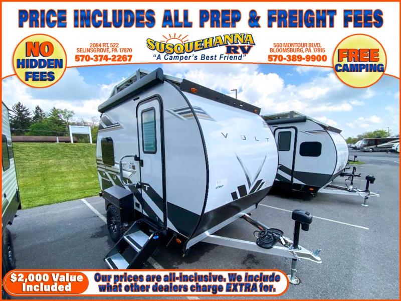 Sunset Park RV VOLT travel trailers provide innovative designs, lightweight construction, and practical features for adventurous campers. Susquehanna RV offers VOLT units with NO HIDDEN FEES — meaning exactly that — and delivery is available for an additional fee. Centrally located in Pennsylvania, we serve surrounding states including New York, New Jersey, and Maryland.