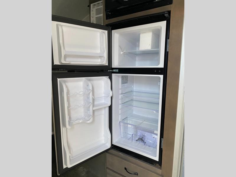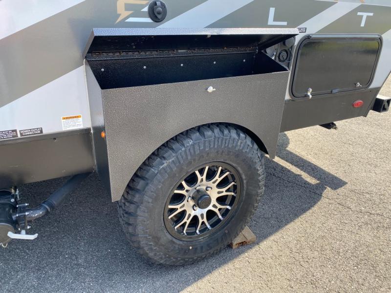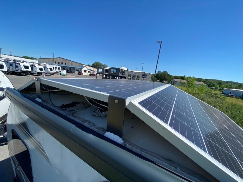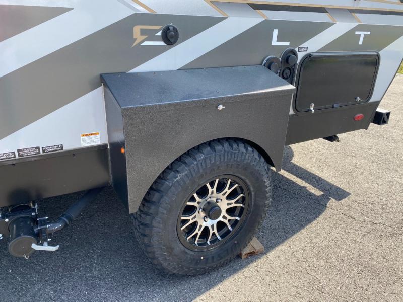 The Sunset Park RV Volt offers the latest in solar power technology so you can decrease your reliance on plug-ins and hookups. With three 385 watt solar panels, there will be plenty of power for your trip. A 6500 watt inverter and 100 amp lithium battery are also standard. The lightweight design includes aluminum framing with high density foam insulation, fiberglass sidewalls, and a one-piece fiberglass roof. The diamond plate rock guard and heavy duty tires are ready to take on more rugged terrain, and a spare tire with carrier is standard if you should need it.