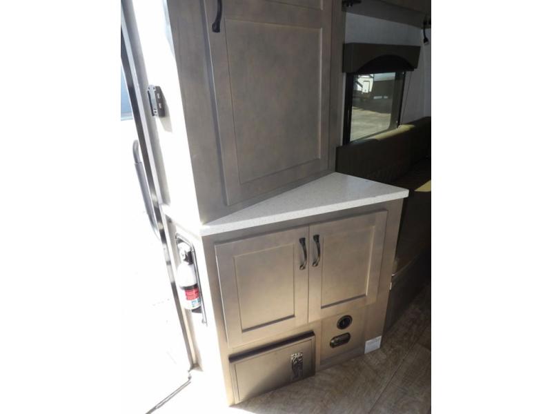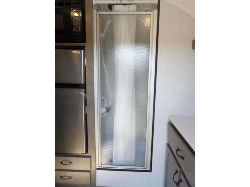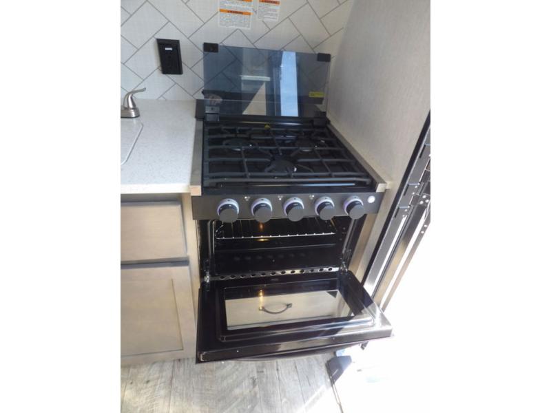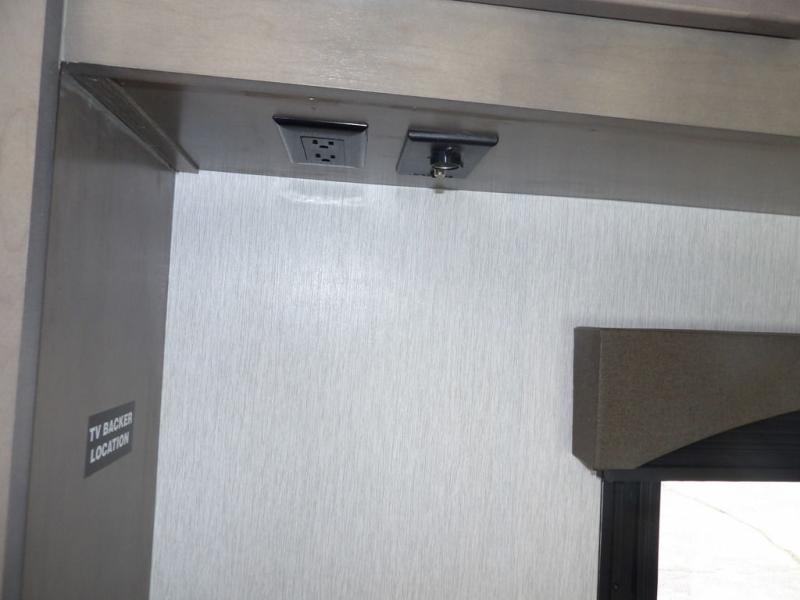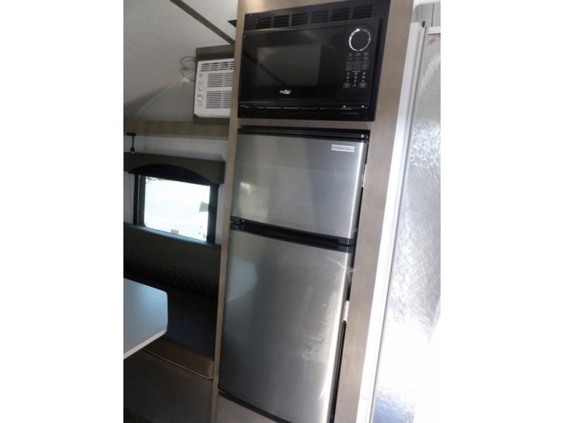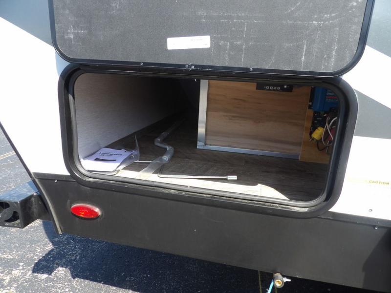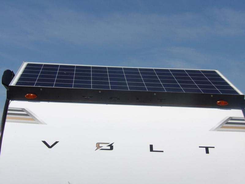 The Sunset Park RV Volt offers the latest in solar power technology so you can decrease your reliance on plug-ins and hookups. With three 385 watt solar panels, there will be plenty of power for your trip. A 6500 watt inverter and 100 amp lithium battery are also standard. The lightweight design includes aluminum framing with high density foam insulation, fiberglass sidewalls, and a one-piece fiberglass roof. The diamond plate rock guard and heavy duty tires are ready to take on more rugged terrain, and a spare tire with carrier is standard if you should need it.