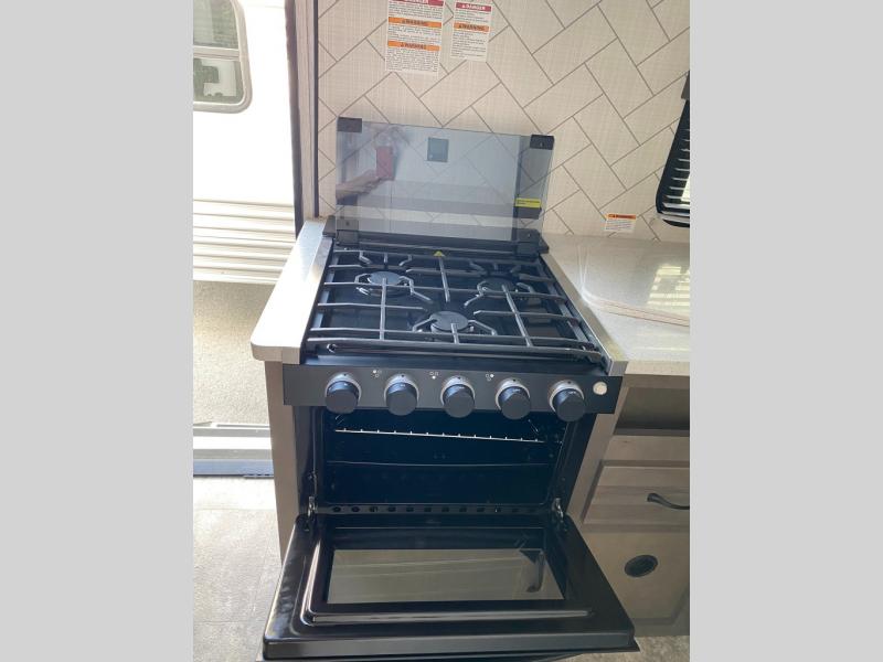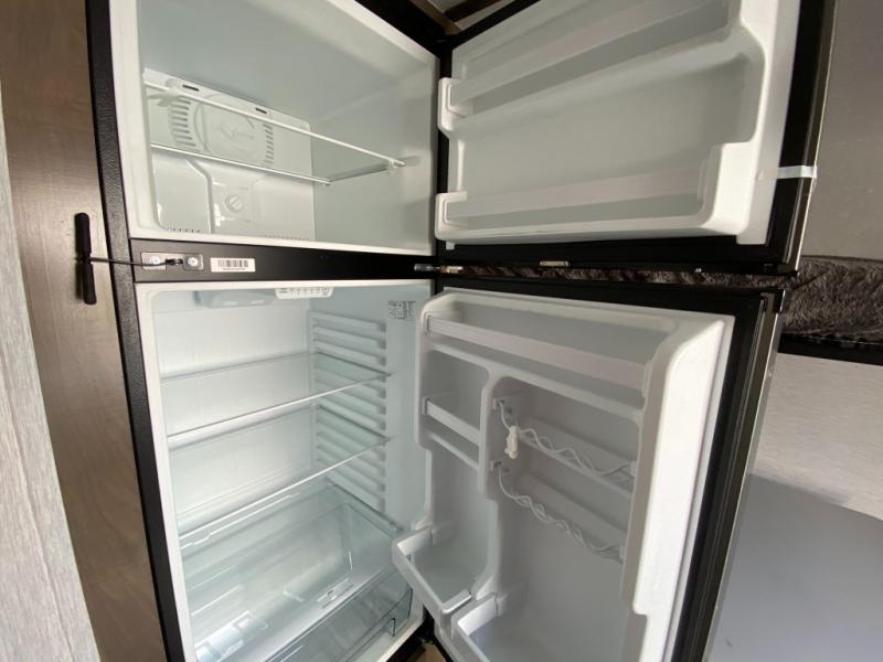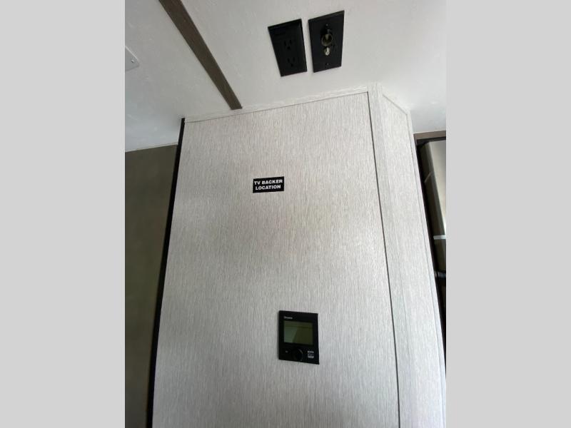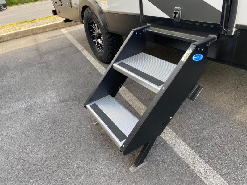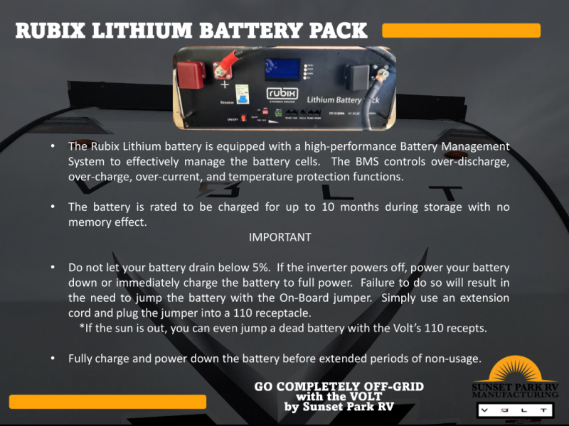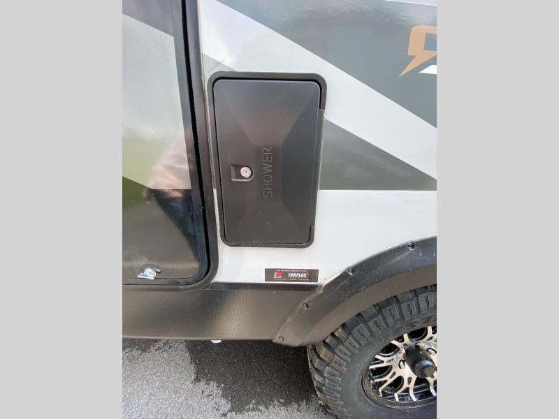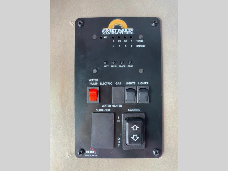 The Sunset Park RV Volt offers the latest in solar power technology so you can decrease your reliance on plug-ins and hookups. With three 385 watt solar panels, there will be plenty of power for your trip. A 6500 watt inverter and 100 amp lithium battery are also standard. The lightweight design includes aluminum framing with high density foam insulation, fiberglass sidewalls, and a one-piece fiberglass roof. The diamond plate rock guard and heavy duty tires are ready to take on more rugged terrain, and a spare tire with carrier is standard if you should need it.