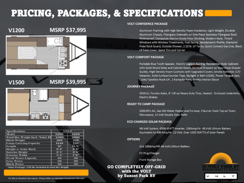 Sunset Park RV Volt 1500 travel trailer highlights: