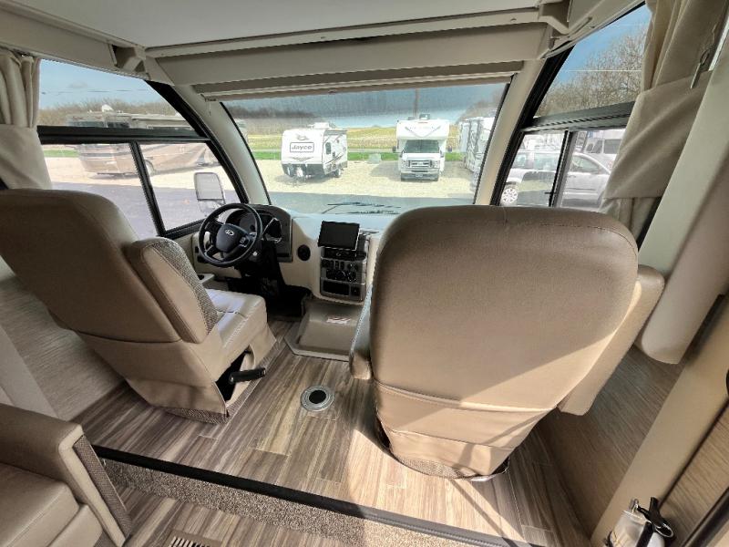 With any Axis RUV Class A gas motorhome by Thor Motor Coach you will enjoy added technology features to make each trip enjoyable, like the RapidCamp+ multiplex lighting and systems control and the Winegard ConnecT 2.0 Wi-Fi/4G/TV antenna. Each model features heated and remote exterior mirrors with integrated side view cameras, reclining and swivel leatherette captain's chairs, and a dash workstation with 110-volt and 12-volt outlets to get some work done if needed. Relaxing after a long day of traveling will be easy with the leatherette furniture, the Euro-style cabinet doors, and 82" interior ceiling height. The HD-MAX exterior with graphics package and black frameless windows provide a sleek look you are sure to love, and don't overlook the power awning with integrated LED lighting and lighted rotocast storage compartments for all your gear.