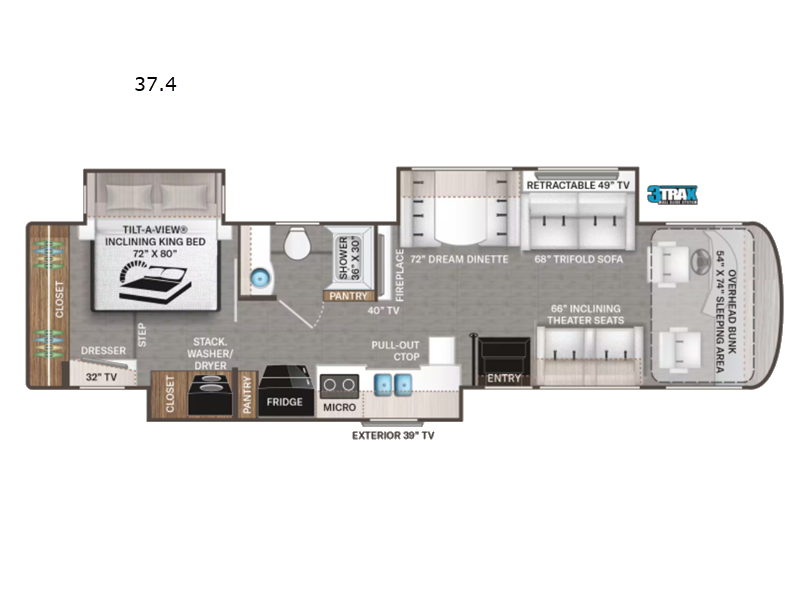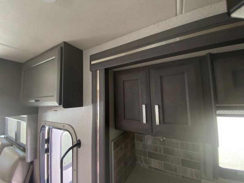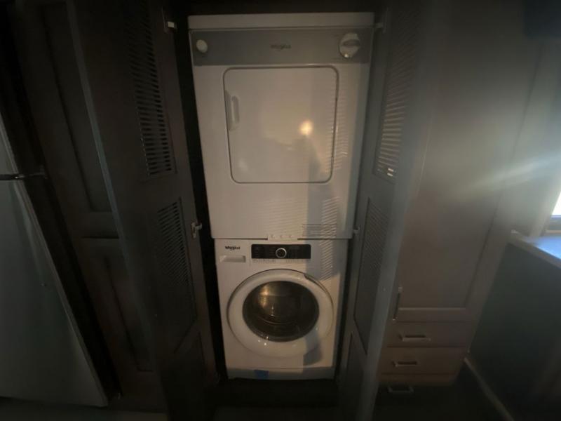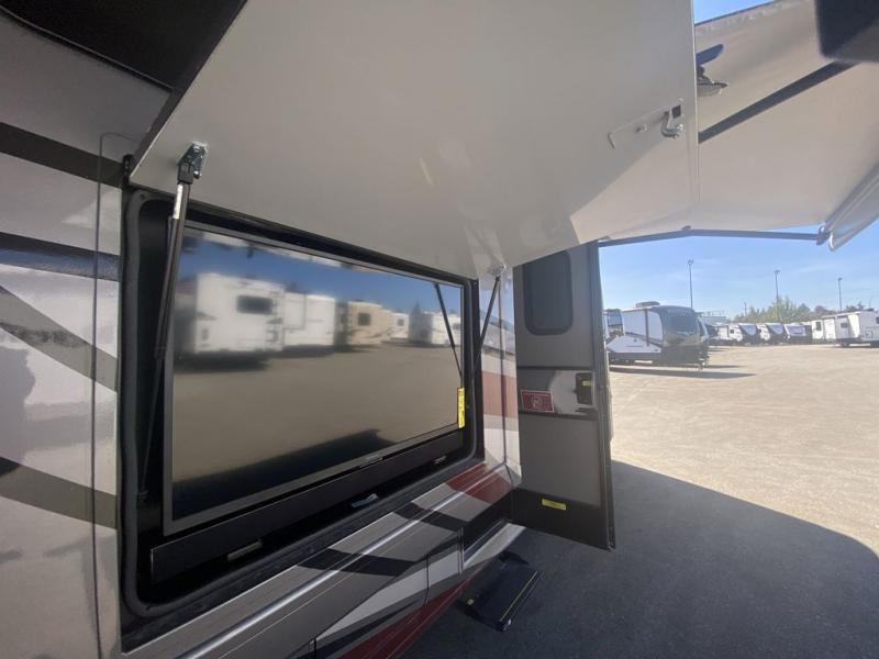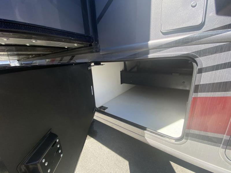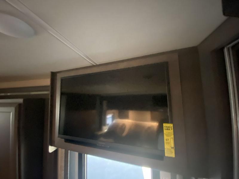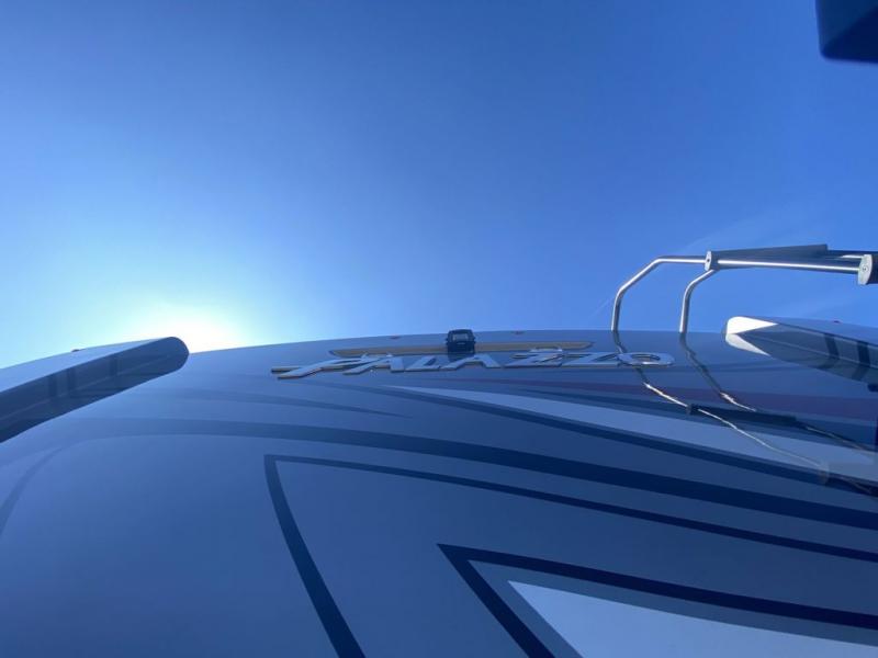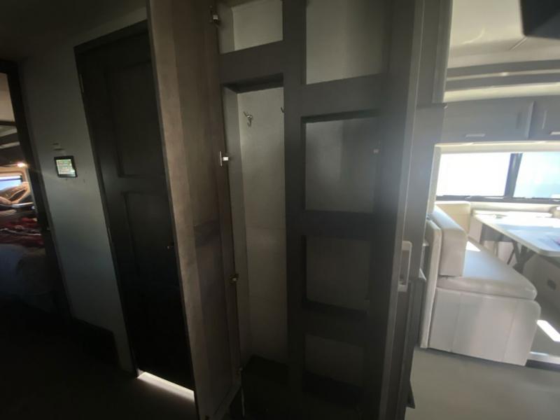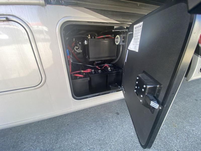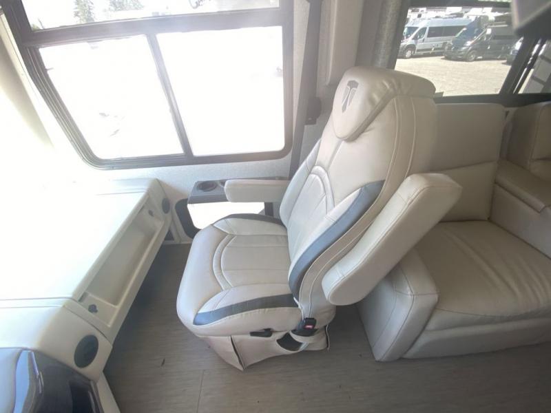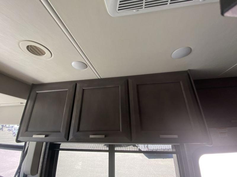 You can't beat the luxury you'll find in this motorhome that can sleep seven each night. You'll love waking up each day on your Tilt-A-View inclining king bed, and there is a full-length closet to store all your clothes. The stacked washer and dryer will allow you to start a load of laundry before you head to the kitchen for breakfast. Whether you're making eggs on the electric induction cooktop, or making oatmeal in the convection microwave, you're sure to find everything you need in this Palazzo kitchen. The main living area will be a spot everyone will love to gather in, especially with a Dream Dinette, a trifold sofa, plus inclining theater seats. There is an overhead bunk the little ones will love, and the 40" LED HDTV and fireplace will make this whole area feel more like home!