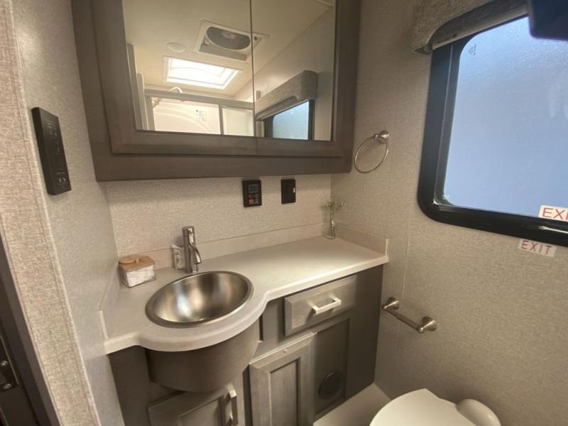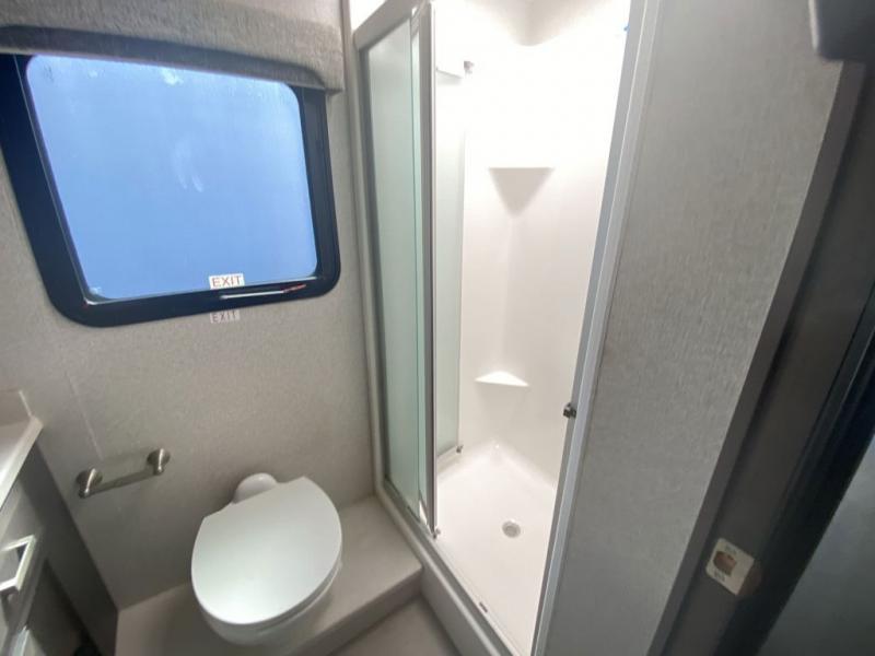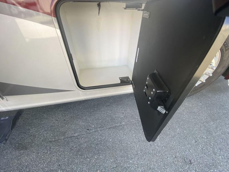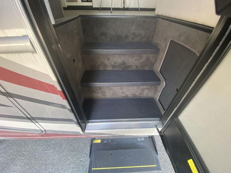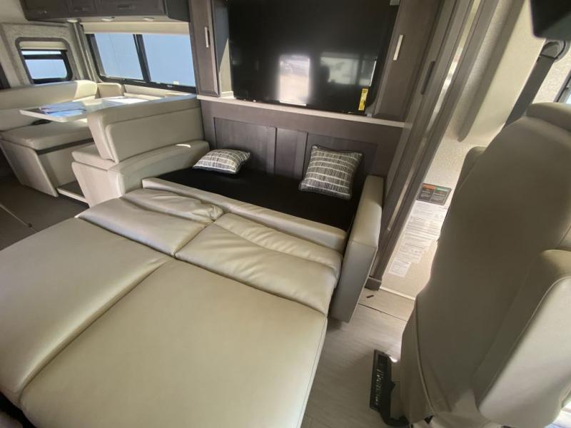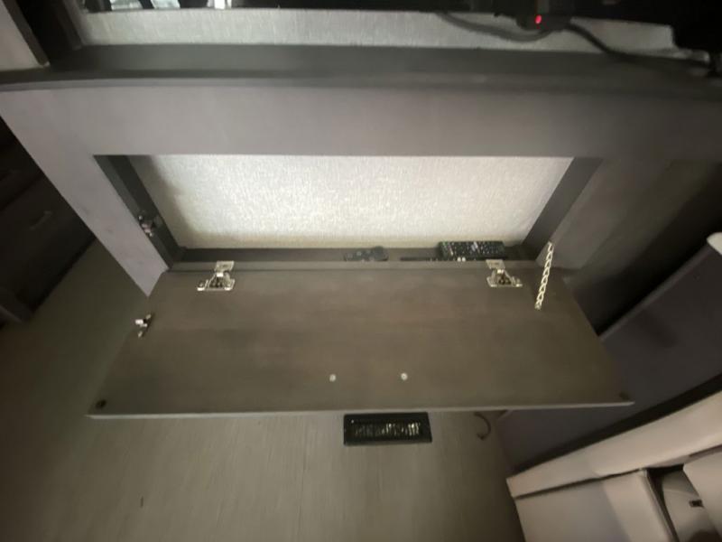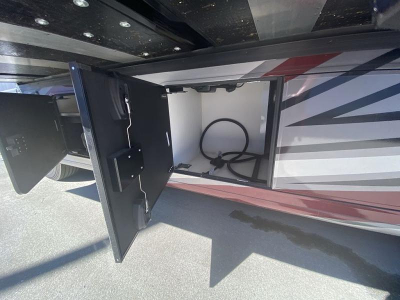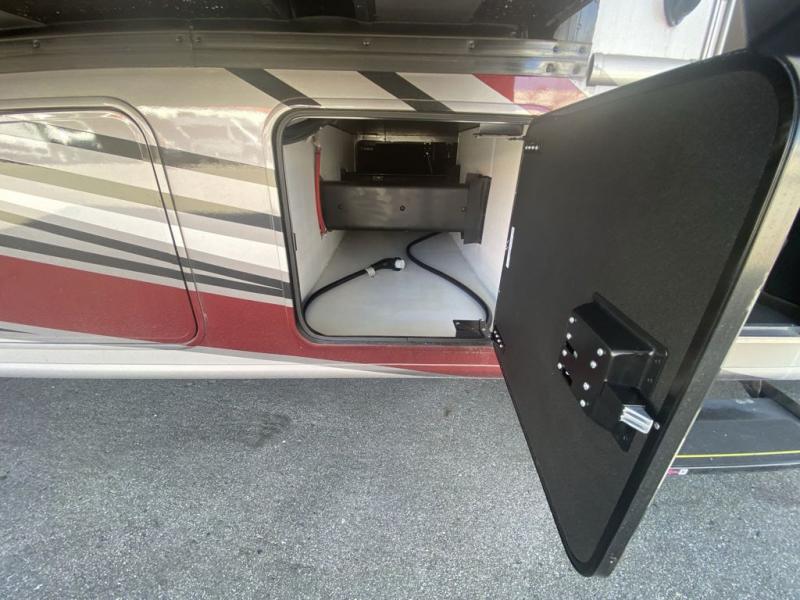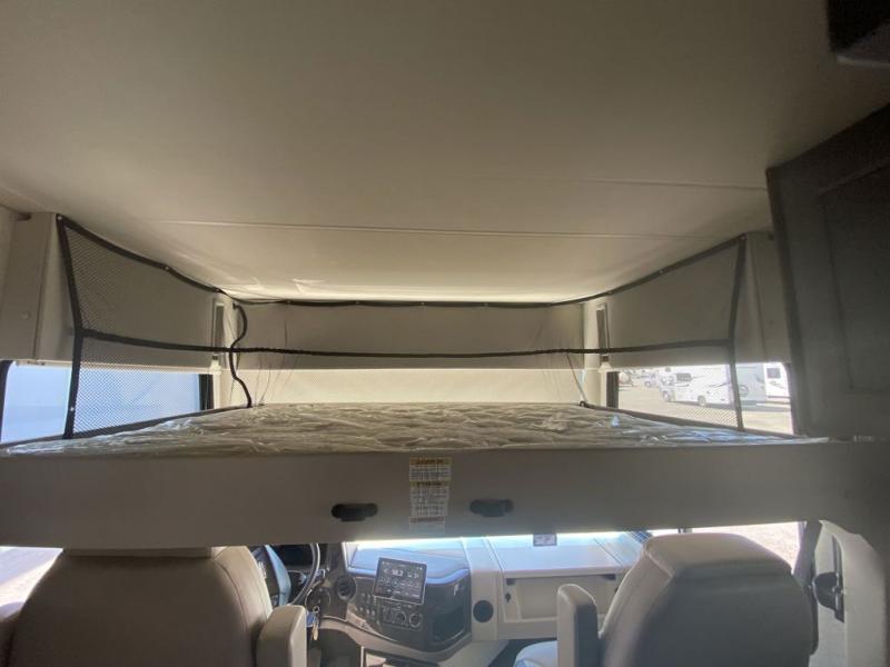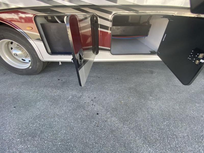 You can't beat the luxury you'll find in this motorhome that can sleep seven each night. You'll love waking up each day on your Tilt-A-View inclining king bed, and there is a full-length closet to store all your clothes. The stacked washer and dryer will allow you to start a load of laundry before you head to the kitchen for breakfast. Whether you're making eggs on the electric induction cooktop, or making oatmeal in the convection microwave, you're sure to find everything you need in this Palazzo kitchen. The main living area will be a spot everyone will love to gather in, especially with a Dream Dinette, a trifold sofa, plus inclining theater seats. There is an overhead bunk the little ones will love, and the 40" LED HDTV and fireplace will make this whole area feel more like home!