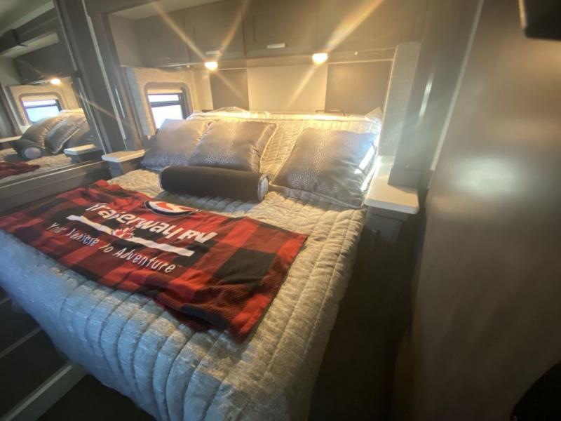 Each journey you take with a Palazzo Class A diesel motorhome by Thor Motor Coach is made smooth thanks to the Air-Ride suspension, the Sachs shock absorbers, and the Atlas foundation. You'll enjoy hassle-free set up thanks to the Rapid Camp + multiplex wiring control system, and there is a Winegard ConnecT 2.0 WiFi/4G/TV antenna to keep you connected to the outside world as you're away from home. The exterior of the Palazzo features lighted storage compartments and a basement pass-through, a 40" LED TV, and invisible front paint protection to withstand the elements. You will fall in love with the interior that includes Studio Collection cabinetry, luxury vinyl tile flooring, leatherette furniture, solid surface countertops, plus many more comforts!