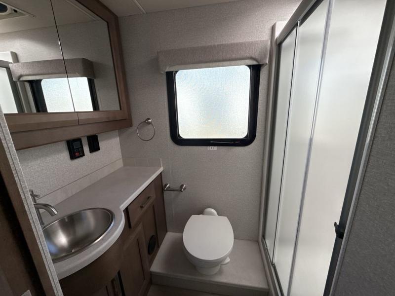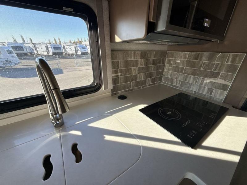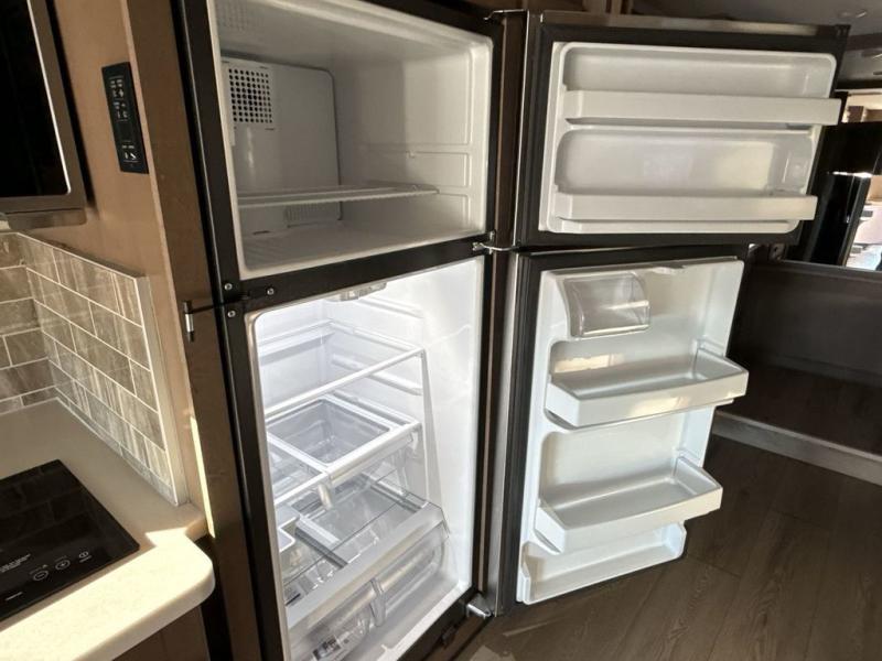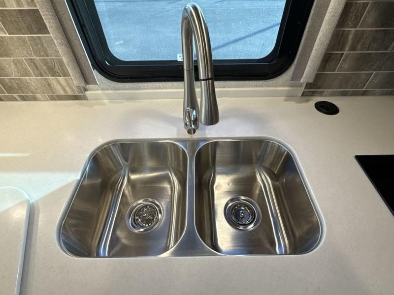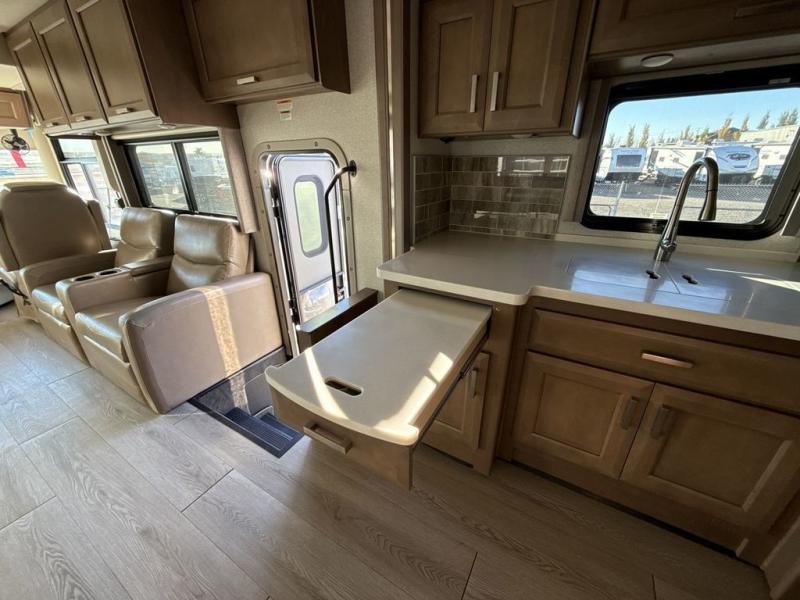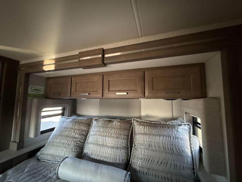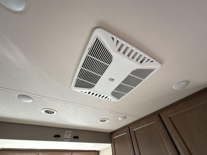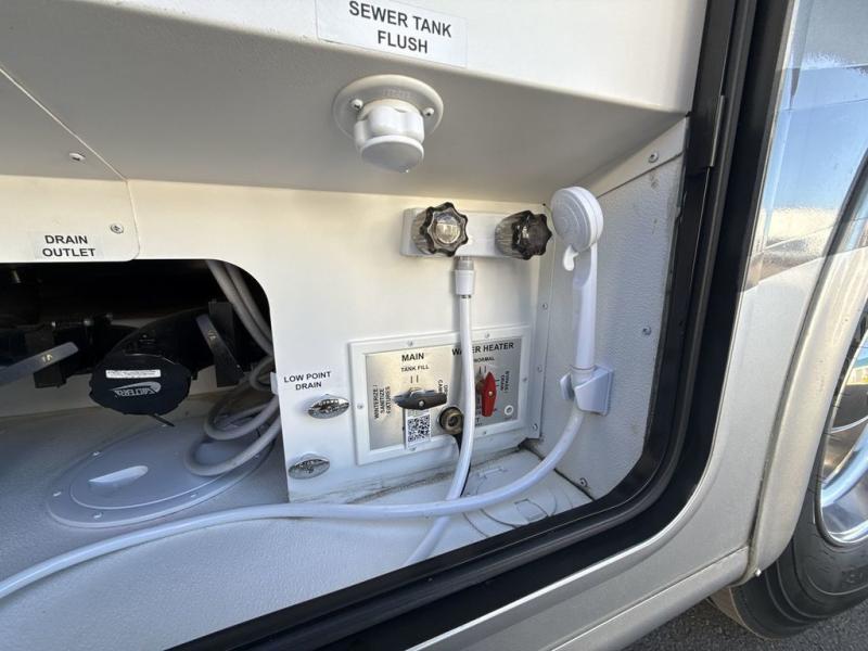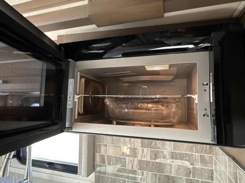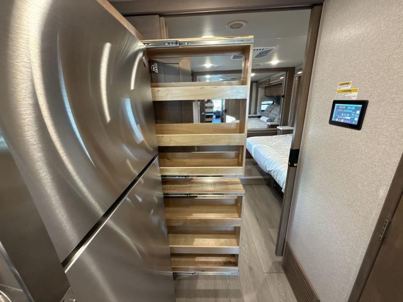 You can't beat the luxury you'll find in this motorhome that can sleep seven each night. You'll love waking up each day on your Tilt-A-View inclining king bed, and there is a full-length closet to store all your clothes. The stacked washer and dryer will allow you to start a load of laundry before you head to the kitchen for breakfast. Whether you're making eggs on the electric induction cooktop, or making oatmeal in the convection microwave, you're sure to find everything you need in this Palazzo kitchen. The main living area will be a spot everyone will love to gather in, especially with a Dream Dinette, a trifold sofa, plus inclining theater seats. There is an overhead bunk the little ones will love, and the 40" LED HDTV and fireplace will make this whole area feel more like home!