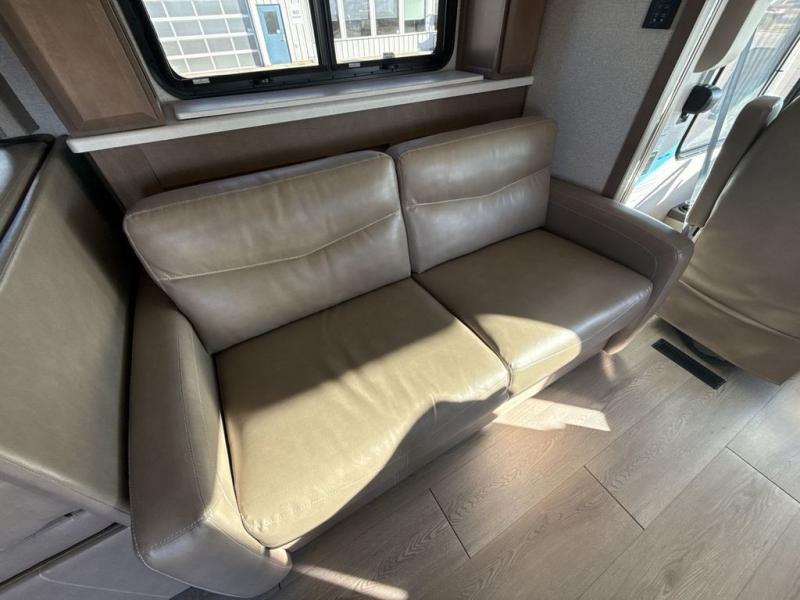 Each journey you take with a Palazzo Class A diesel motorhome by Thor Motor Coach is made smooth thanks to the Air-Ride suspension, the Sachs shock absorbers, and the Atlas foundation. You'll enjoy hassle-free set up thanks to the Rapid Camp + multiplex wiring control system, and there is a Winegard ConnecT 2.0 WiFi/4G/TV antenna to keep you connected to the outside world as you're away from home. The exterior of the Palazzo features lighted storage compartments and a basement pass-through, a 40" LED TV, and invisible front paint protection to withstand the elements. You will fall in love with the interior that includes Studio Collection cabinetry, luxury vinyl tile flooring, leatherette furniture, solid surface countertops, plus many more comforts!