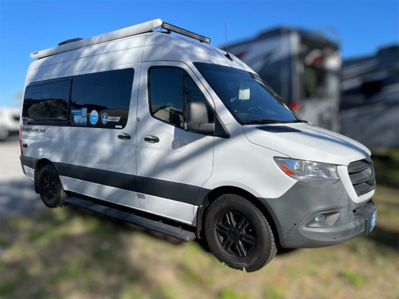 With any Sanctuary Class B diesel motorhome, you can explore off-grid thanks to the solar charging system which includes a 190-watt solar panel and charge controller to keep your house batteries full without overcharging. The Winegard ConnecT 2.0 works as your WiFi extender, 4G hotspot and TV antenna in case you need to stay connected, and the Thule accessories provide the adventurer a bike rack, a powered awning, a roof ladder and a roof rail system. Each is built on a Sprinter 2500 4x2 camper van chassis with a Mercedes Benz 3.0L turbo diesel engine offering 188 HP so you can take the path less traveled and set up camp in the great outdoors!