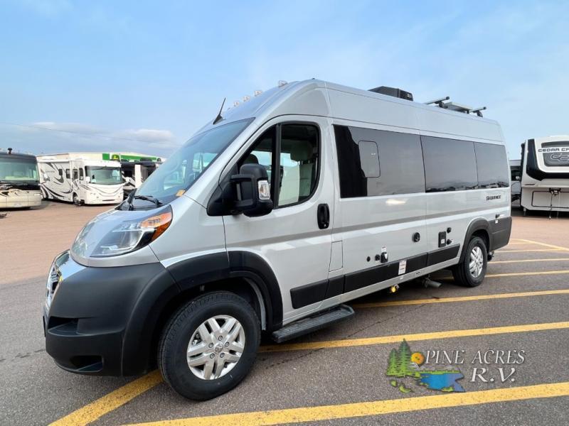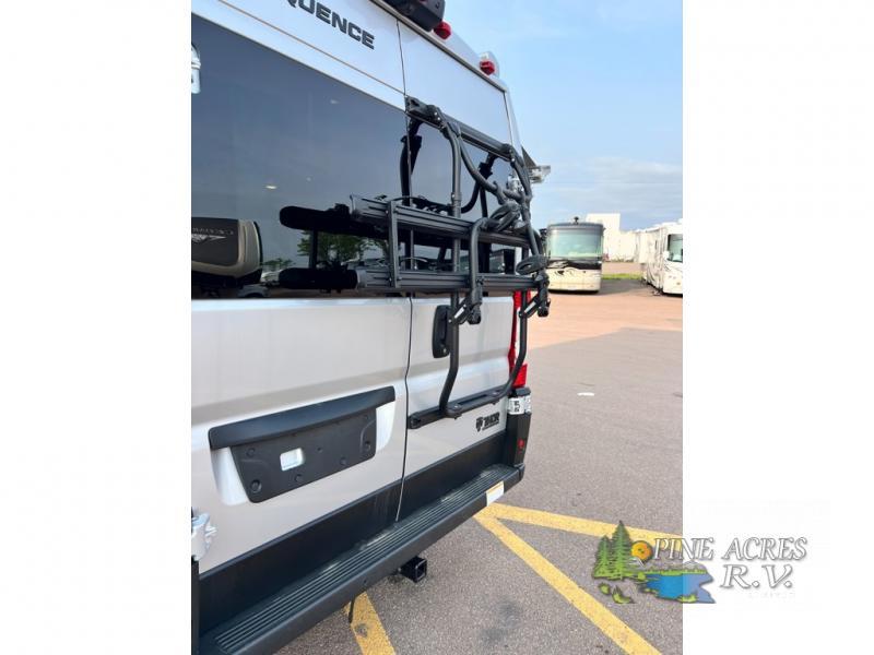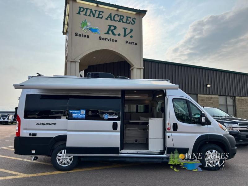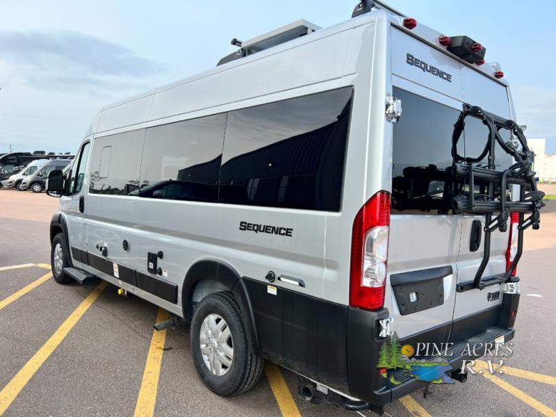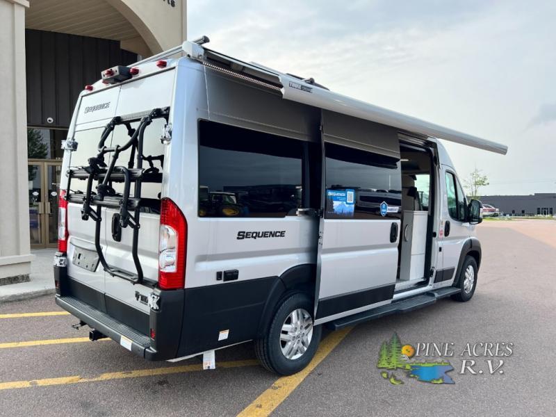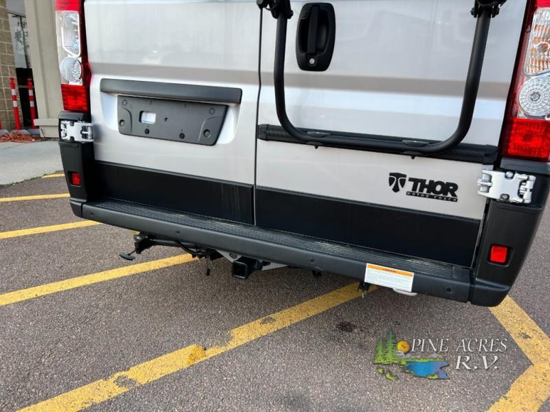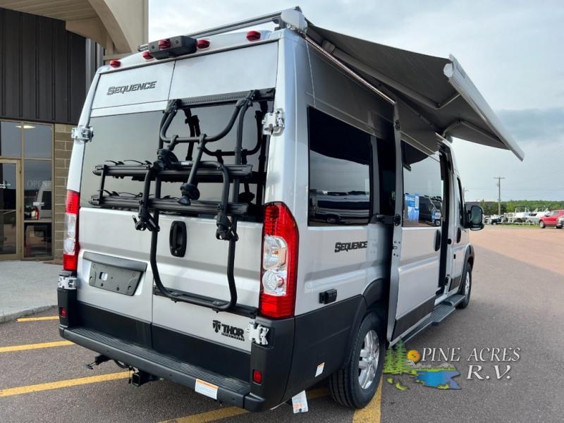 Each one of these Thor Motor Coach Sequence Class B gas motorhomes are built with a RAM Promaster 3500 XT window van chassis and powered by a fuel-efficient V-6 engine for an easy drive, economical explorer van! Their internal storage capacity is increased by the driveshaft not running to the rear making it possible for the holding tanks, electrical components, and LP systems hidden underneath. They are Thule equipped with a roof ladder to view your destination in a different perspective, a bike rack for two adult bikes, and a lateral arm patio awning with integrated LED lighting. Modern living and convenience is what you will find throughout the interiors with a premium touchscreen dash radio, Apple Car Play and Android Auto that connects your favorite music and podcasts through USB or Bluetooth, and TecnoForm S.P.A. Euro-style cabinetry. Plus, there is residential vinyl flooring so you can bring your furry friend along and not worry about messes becoming stains!