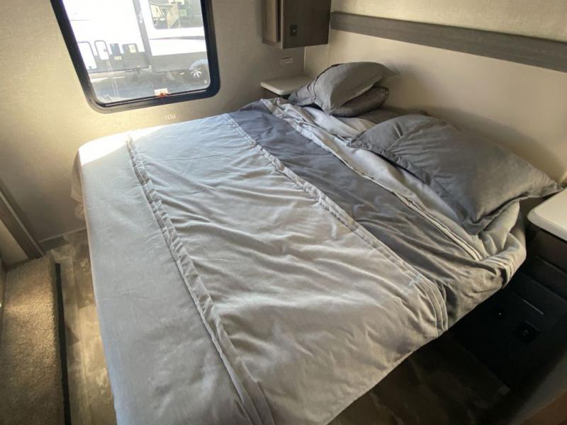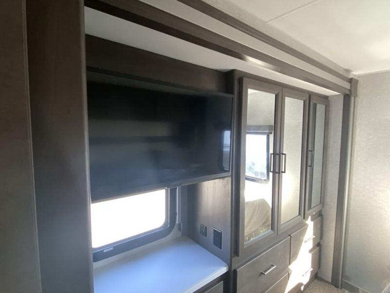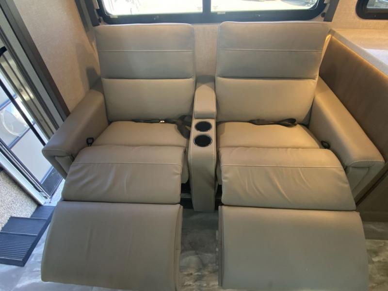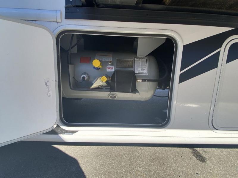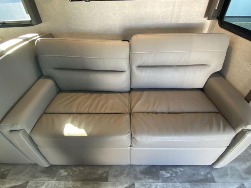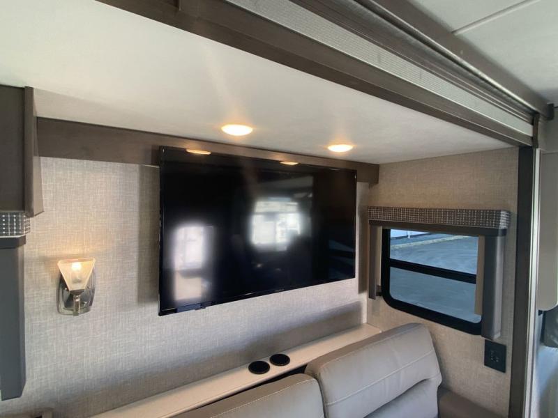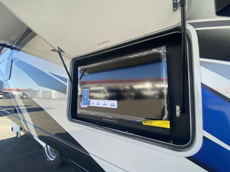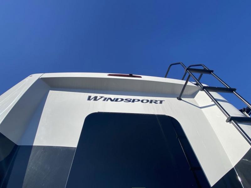 This Windsport Class A gas motorhome is exactly what you'll need to have enjoyable vacations with the family! The main living area is decked out with comfort. First of all, it offers you more space because of the slide out, and this slide out is what holds the 68" Dream Dinette, 68" sofa bed, and 49" LED TV. Second, there is even more lounge space with the theater seating with footrests that sits across from the dinette and sofa bed. And on top of all of that, you'll also have a second LED TV in the living room, so you can have a surround sound experience and multi-view entertainment while watching a movie. The private bedroom also offers great comfort with its king bed and 32" LED TV, and there is more entertainment outside with the exterior 32" TV.