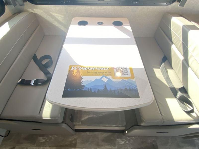 There are all sorts of adventures to be had with the Thor Motor Coach Windsport Class A gas motorhome! Built on a Ford F-53 chassis, the Windsport will gather lots of attention with its HD-MAX® exterior with graphics package. It also offers you a basement pass-through storage and a Pet-Link™ multi-purpose tie-down. The Bird's Eye™ window is so easy to see through in the cockpit, and there are reclining/swivel leatherette captain's chairs to relax in while you travel. The Winegard® ConnecT™ Wi-Fi extender +4G will allow you to post on your social media or send an email from the cockpit's dash work station, and the Rapid Camp+® multiplex wiring control system with Bluetooth and 10" touchscreen will allow you to control and monitor the various electrical systems on your coach.
