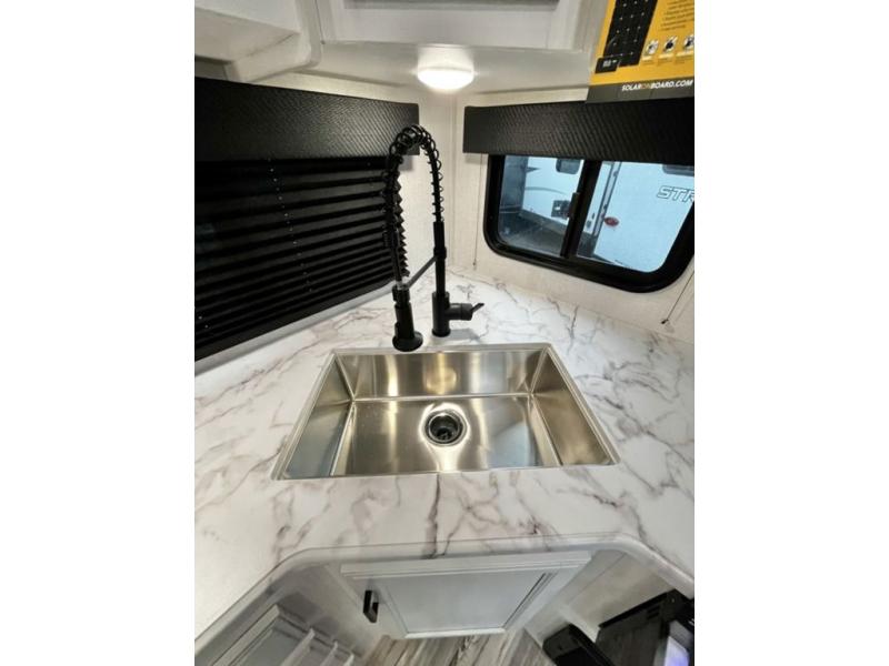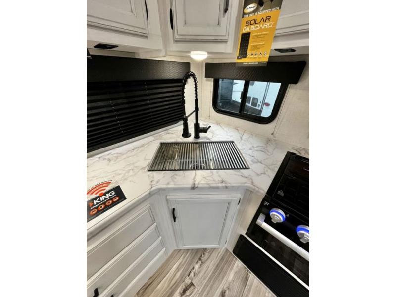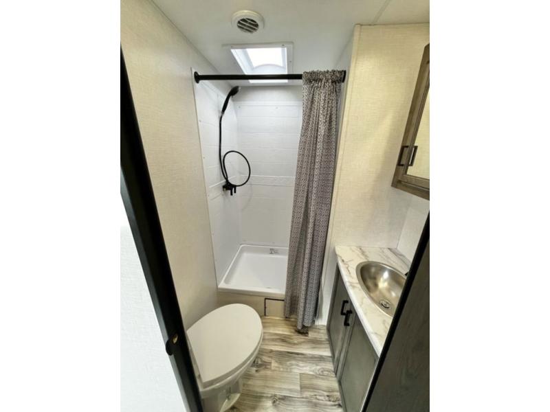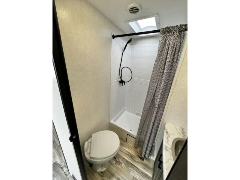 Every Venture RV SportTrek lightweight travel trailer is constructed to offer peace of mind and the comforts of home! Their purposeful residential kitchens are packed with handy features like a recessed gas cooktop with glass cover for more countertop space, a sink cover to drain food and dishes which can be rolled out of the way for sink use, and continuous countertops. You will find plenty of storage throughout with unique areas like the under-seat removable storage tubs below the dinette cushions and the StorMore nightstands on either side of the bed behind the full-length closets. The magnetic slam-latch baggage doors to the spacious pass-through storage area will hold your outdoor gear in place. They even come with a hot and cold exterior shower and SporTrek's Weather Shield which includes a radiant foil barrier, forced heat, enclosed underbelly, enclosed gate valves, and a reflective PVC roof membrane. What more could you want, come find your favorite model today!