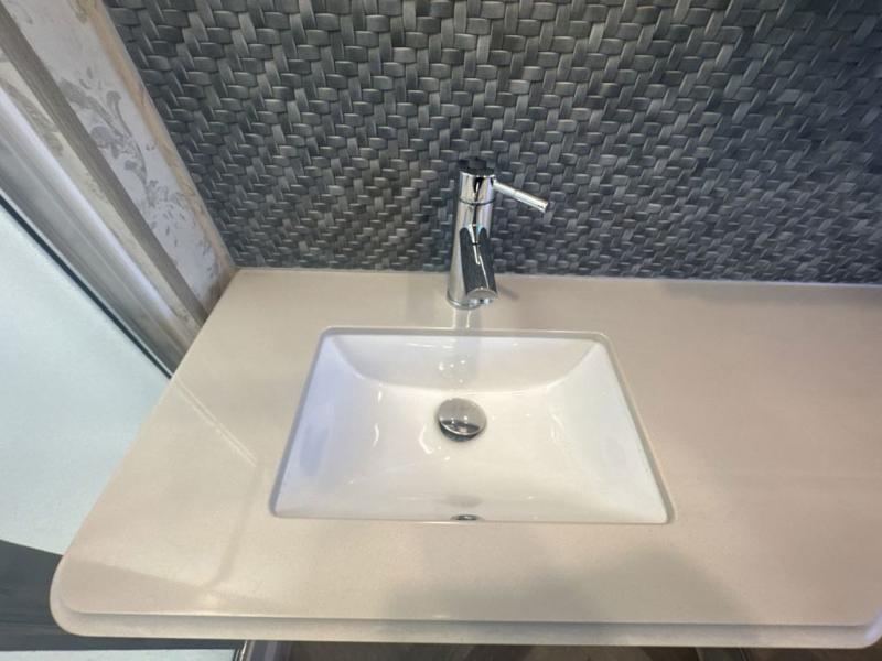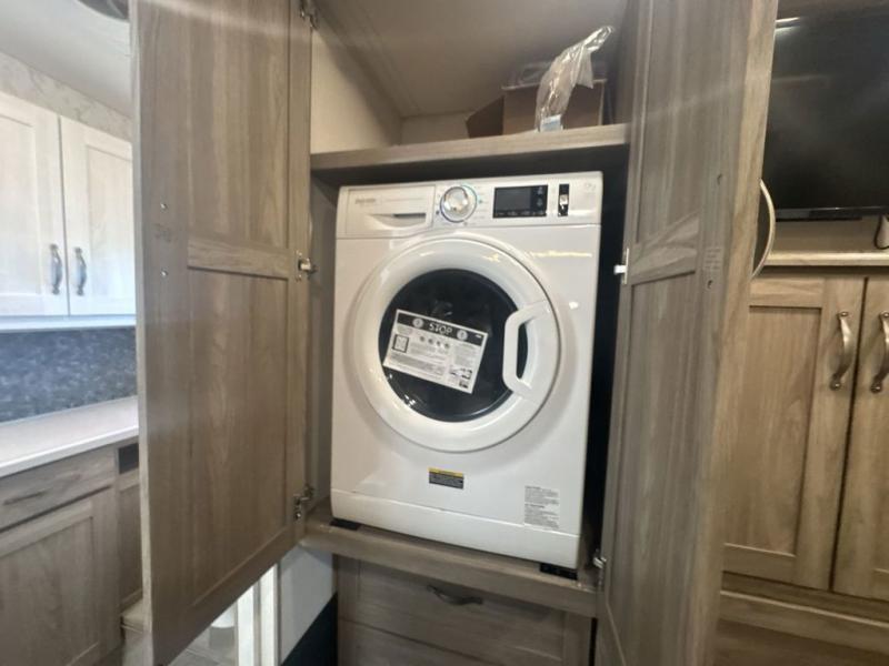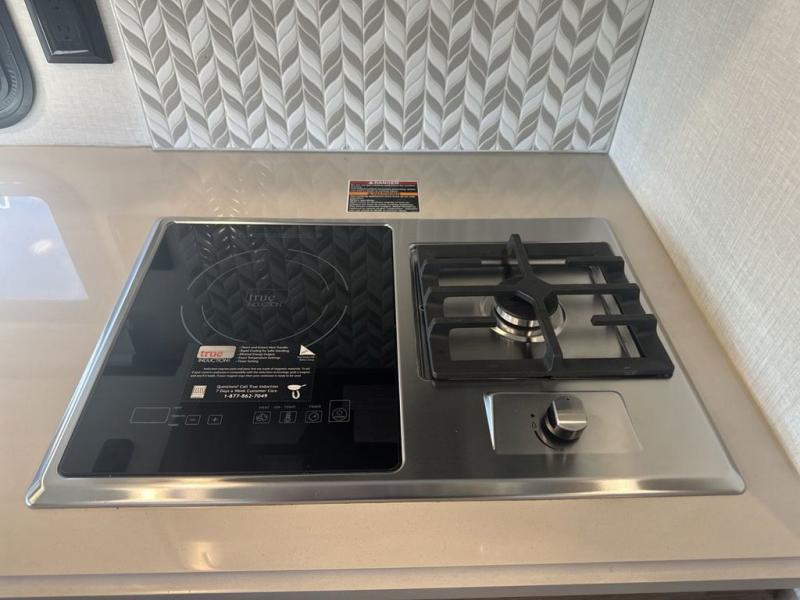 Traveling with your family or larger group will be so easy in this spacious Adventurer Class A gas motorhome. The full and half bath are sure to come in handy, and you'll find plenty of seating space for everyone with the extendable sectional sofa. Once the chef has prepared lunch on the gas/induction range top, the kids can enjoy it at the dinette with a Hi-Lo table, and the adults can take their plate outside to sit under the 16' power awning. Whether you're watching a movie on the 39" HDTV or just enjoying the glow of the electric fireplace, you will truly enjoy your time spent in this coach. The master bedroom includes a king bed slide, dual wardrobes and nightstands, and a space to add an optional washer and dryer if you choose. And if you need additional sleeping space, just choose the optional StudioLoft bed!