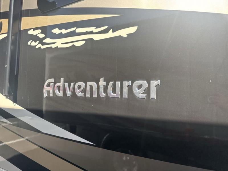 The family-friendly Adventurer Class A gas motorhome by Winnebago is the ultimate family getaway for your trips near and far. The swivel captain's seats include fixed lumbar support and multi-adjustable slide/recline for a truly comfortable ride. You will appreciate the Sony 9" TS radio with Bluetooth, a rearview and sideview monitor system with a color touch screen, SiriusXM ready, and more to make the drive easier than ever. The powered blackout roller visor/shade on the front windshield will provide privacy when you stop for lunch, and the dash workstation will come in handy when you've got a deadline. Each model includes residential vinyl flooring throughout, a soft vinyl ceiling, a Corian galley countertop, and ceramic tile backsplash. The under-bed storage will provide a place for your luggage, and you'll find lighted storage compartments outside for all your larger gear. The Sumo Springs front and rear suspension from SuperSprings International and steering stabilizer system will provide a smooth ride wherever the road takes you, and the exterior full-body is sure to turn heads!