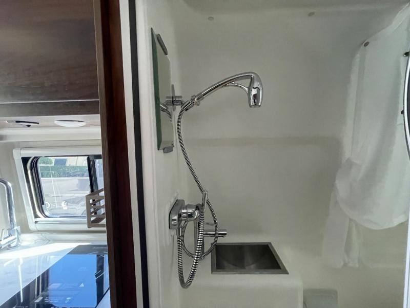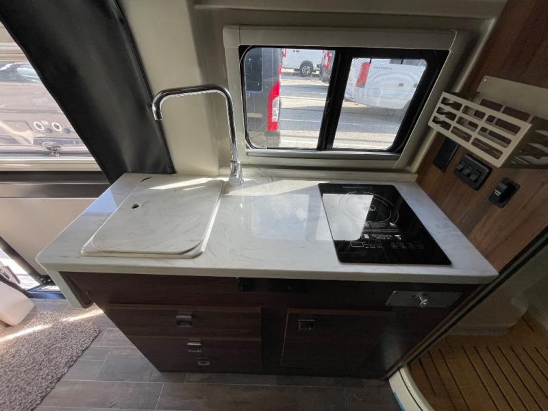 This motorhome has everything you need for a comfortable trip! You can roll out of the corner 49" x 77" bed then easily exit through the rear double doors to catch the beautiful sunrise. Freshen up in the 28" x 51" wet bath with a sliding door then head to the kitchen and grab some eggs from the two door 6.0 cu. ft. compressor-driven refrigerator/freezer then fry them on the single burner induction cooktop. The flip-up countertop extension will make your meal prepping easier and the cold water filtration system ensures you have clean water where ever you go. The two cab seats in the living area have an adjustable/removable table and mount to enjoy your meals. This model also comes with the Pure3 energy management system which has a 3-module lithium-ion energy pack, 3,600 watt inverter, a Bluetooth control module, an energy pack heating system, and a second dedicated alternator powered by the chassis engine!