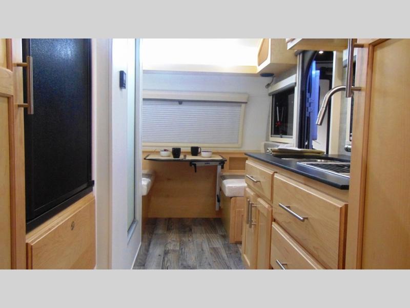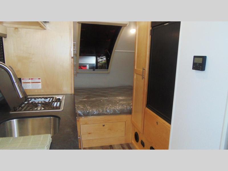This Little Guy teardrop trailer has an impressive 6' 7" interior height, so even though your trailer is little, you don't have to be little to enjoy it. The large pass-through storage compartment gives you more space to bring along extra gear, and the 2" rear receiver can hold bike racks or storage racks. The exterior entertainment center comes with a TV mount, two 5" outdoor speakers, and HDMI, Coax, and power outlets. The kitchen has a microwave and two-burner stove, so you'll never go hungry, and the dinette can turn into a bed for one other person. If you add the optional Rough Rider Package, you can get 15" off-road tires and wheels and a 2.5" axle riser for added clearance.