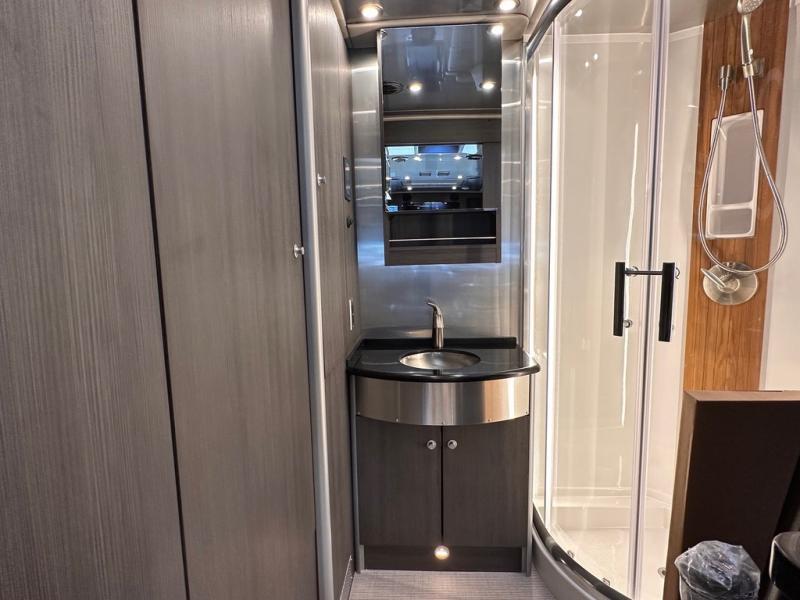 With the Atlas Class B+ diesel motorhome by Airstream, you not only get an enduring Airstream design, conveniences and luxury features, but also the proven Mercedes-Benz safety systems and performance. The coach is built with Azdel composite roof, floor, and wall material, a vacuum-bonded aluminum framed floor, radius walls, a fiberglass crowned roof for extra headroom, trimless smooth fiberglass body seams, and molded fiberglass front and rear caps. And the Mercedes-Benz 2.0L 4-cyliner high-output diesel engine will power your many excursions! The main cabin offers adjustable LED lighting, flush-mount cabinet hardware and soft close doors, a Froli ergonomic bed support system for a good night's sleep. You will also enjoy Ultraleather seating, USB charging ports for your electronics, marine woven synthetic flooring, and matte finish laminate cabinetry to mention a few highlights. When you are wanting quality and craftmanship, and a well-traveled life, choose the Atlas and never turn back!