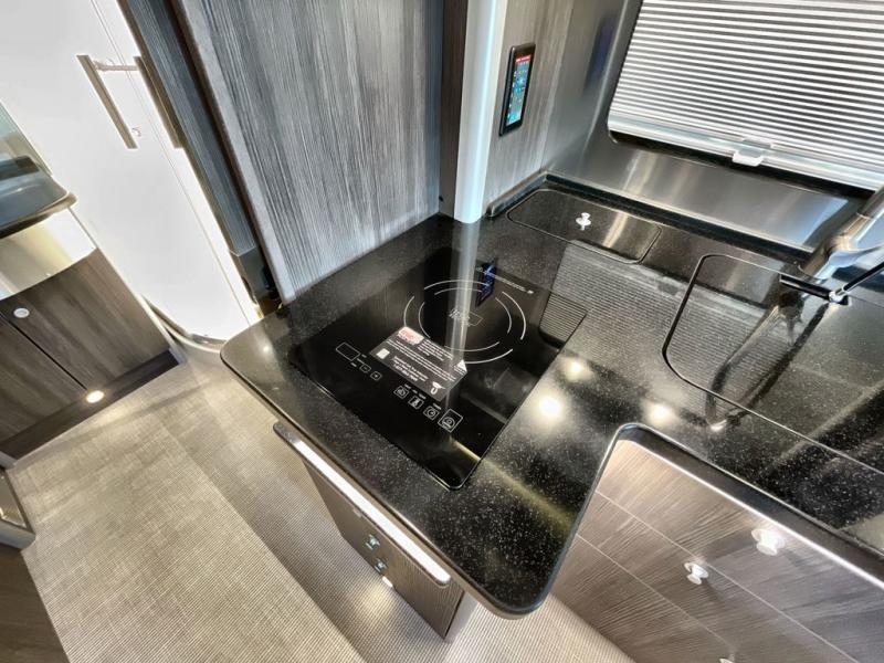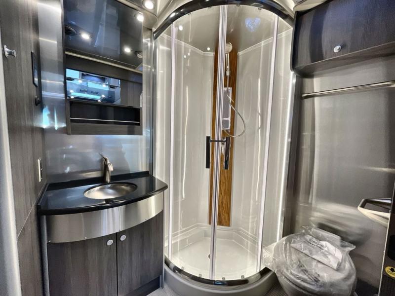 With the Atlas Class B+ diesel motorhome by Airstream, you not only get an enduring Airstream design, conveniences and luxury features, but also the proven Mercedes-Benz safety systems and performance. The coach is built with Azdel composite roof, floor, and wall material, a vacuum-bonded aluminum framed floor, radius walls, a fiberglass crowned roof for extra headroom, trimless smooth fiberglass body seams, and molded fiberglass front and rear caps. And the Mercedes-Benz 2.0L 4-cyliner high-output diesel engine will power your many excursions! The main cabin offers adjustable LED lighting, flush-mount cabinet hardware and soft close doors, a Froli ergonomic bed support system for a good night's sleep. You will also enjoy Ultraleather seating, USB charging ports for your electronics, marine woven synthetic flooring, and matte finish laminate cabinetry to mention a few highlights. When you are wanting quality and craftmanship, and a well-traveled life, choose the Atlas and never turn back!