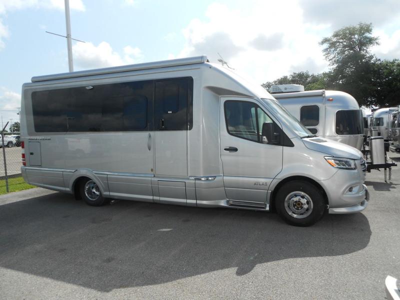 With the Atlas Class B+ diesel motorhome by Airstream, you not only get an enduring Airstream design, conveniences and luxury features, but also the proven Mercedes-Benz safety systems and performance. The coach is built with Azdel composite roof, floor, and wall material, a vacuum-bonded aluminum framed floor, radius walls, a fiberglass crowned roof for extra headroom, trimless smooth fiberglass body seams, and molded fiberglass front and rear caps. And the Mercedes-Benz 2.0L 4-cyliner high-output diesel engine will power your many excursions! The main cabin offers adjustable LED lighting, flush-mount cabinet hardware and soft close doors, a Froli ergonomic bed support system for a good night's sleep. You will also enjoy Ultraleather seating, USB charging ports for your electronics, marine woven synthetic flooring, and matte finish laminate cabinetry to mention a few highlights. When you are wanting quality and craftmanship, and a well-traveled life, choose the Atlas and never turn back!