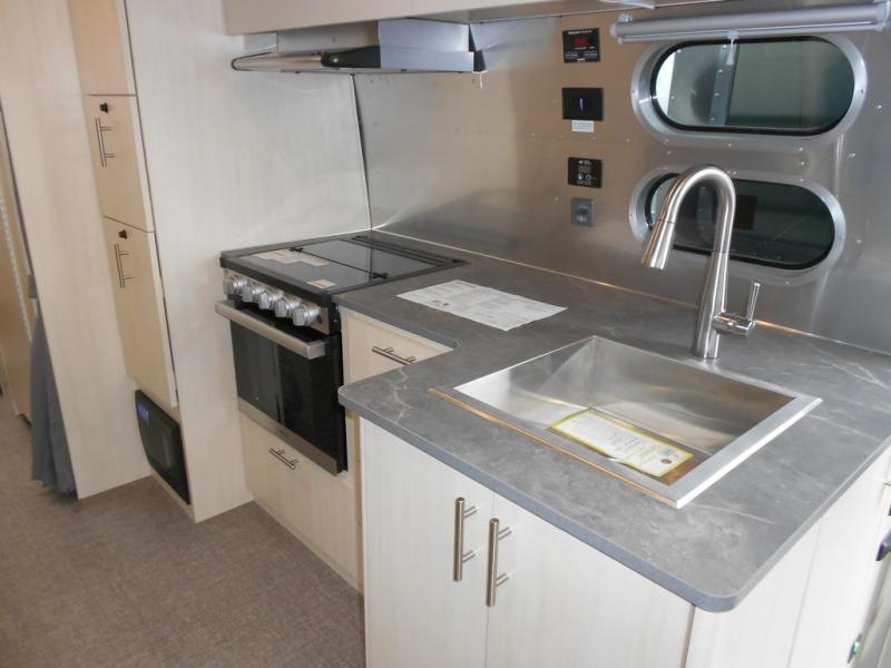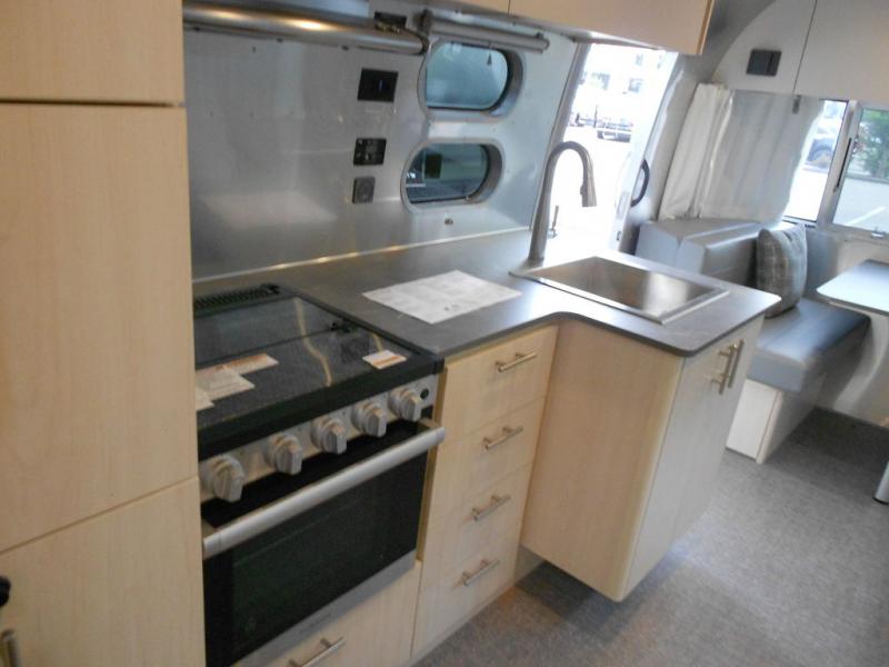 The family-friendly and popular Flying Cloud travel trailers by Airstream are built for ease of towing with a rear-view camera to make reversing and parking easier and stainless steel front stone guards to protect the lower segments from road debris. The iconic Airstream design is created outside and inside by the semi-monocoque aluminum superstructure, the temperature reducing one-piece white aluminum roof, the panoramic front windows, and the stylish aluminum wheels. The interior will have you feeling right at home with handcrafted cabinetry, plenty of storage and counter space, sleek roller blinds and blackout curtains, plus residential style faucets!
