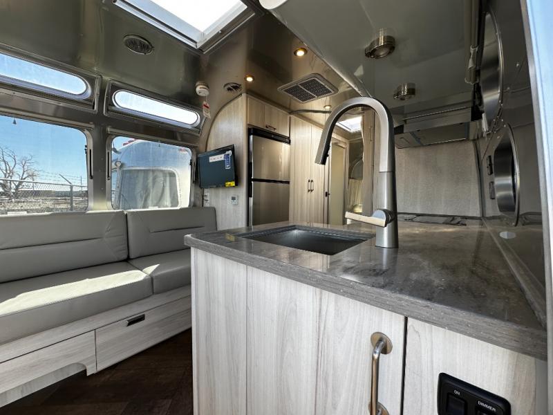 The first thing you will notice about this International travel trailer is the calming atmosphere! Airstream has done a wonderful job of creating a tranquil sanctuary for you to take your vacations in. The kitchen has a three-burner cooktop, stainless steel sink, 8 cu. ft. refrigerator, and microwave so that you can create new and exciting dishes each time you are away. This trailer also has excellent storage space with the overhead storage lockers, the wardrobe with hanging bar, the under-bed storage, and the exterior storage compartment. You can also find great entertainment as you spend your time in this trailer because the two LED HDTVs will allow you to watch a movie on the Blu-Ray DVD player.