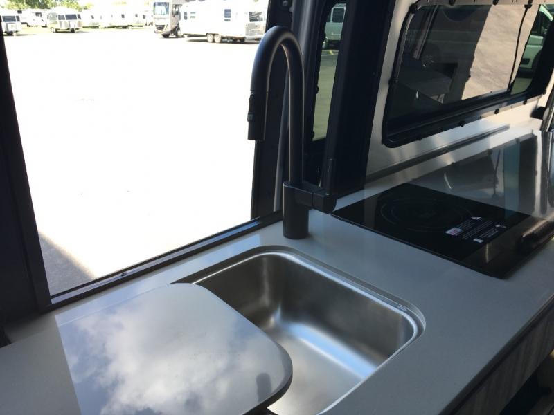 Inside, the 24X-e is all Airstream: sleek, modern, and built to last. The Ultraleather® seating, solid-surface countertops with edge-band lighting, and adjustable LED lighting give the interior a polished look and feel. The blackout privacy shades ensure a good night’s sleep, even when parked under bright city lights or a high-noon sun.