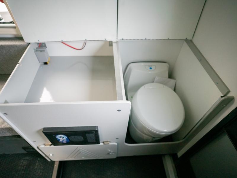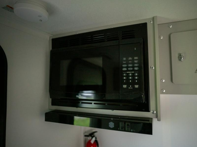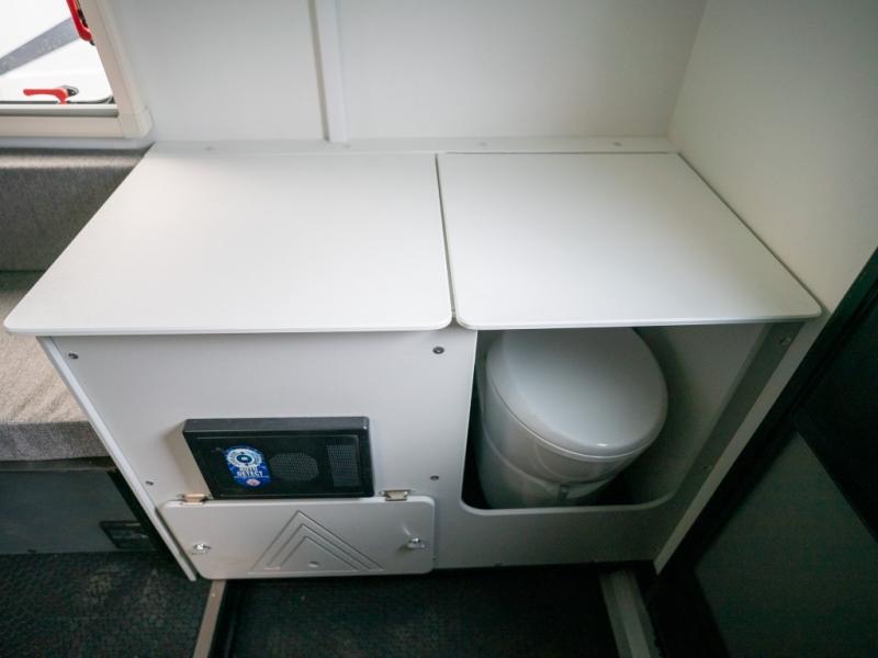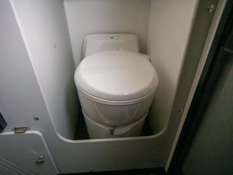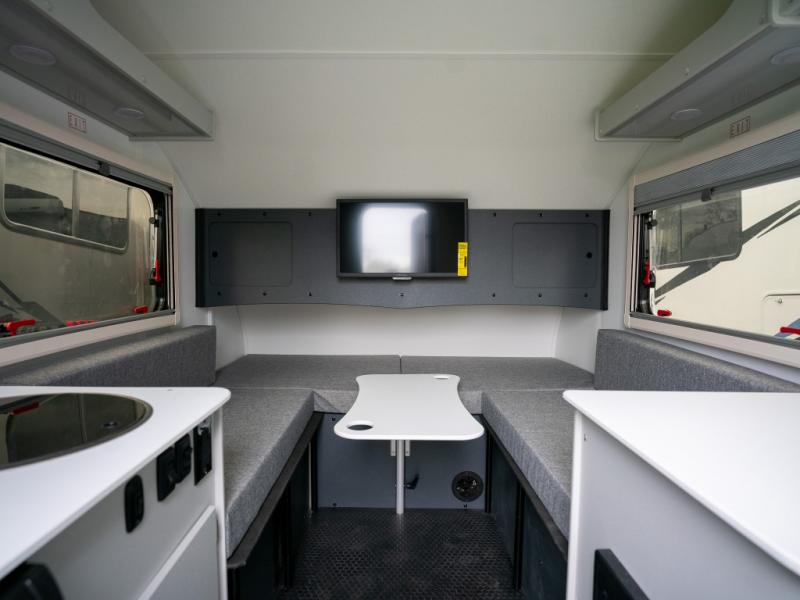 You'll love this travel trailer that features a little more interior space for a more at-home feel. There are two dinette seats with a table where you can dine each day, and this area can fold down to create a 72" x 77" bed size. You might even even want to watch movies in bed with the 23" flat screen TV! This model includes a cassette toilet so you don't have to use the camp's facilities in the middle of the night, and you can make breakfast on the two burner cooktop in the morning.