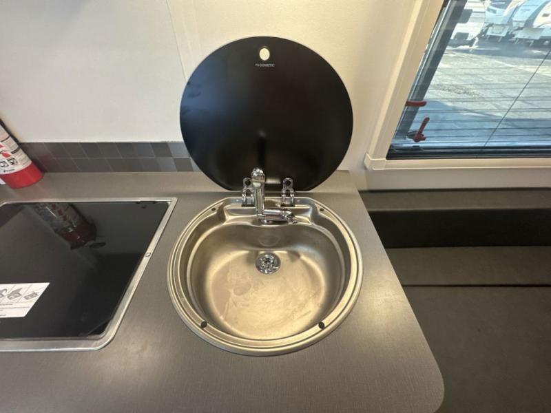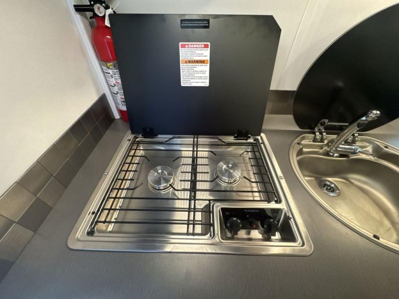 Your time at the campground will be complete with this lightweight travel trailer. There are two dinette seats with a table to dine, relax, and convert to a 77" x 72" bed size when you're ready for bed. You won't have to use the camp's facilities thanks to the wet bath with an enclosed shower and toilet combination plus a shower door for privacy. This model includes a two burner cooktop, a sink, plus a 3.0 cu. ft. two-way refrigerator under the range to store your perishables.