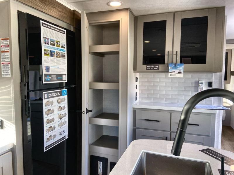 Form and function works together with every one of these Alliance RV Delta travel trailers! They are built with a walk-on roof with a seamless PVC roof covering, Mylar reinforced exterior seals, and a heated and enclosed underbelly to protect your unit in all seasons. The commercial grade vinyl flooring will be easy to clean and the oversized atrium windows throughout let in plenty of natural sunlight. With 62 cu. ft. of drop frame pass-through storage, you can bring along all of your essential camping gear plus it has USB charging for more convenience. There are many at home interior conveniences including a Bluetooth speaker, USB charging throughout, and even a pull-out kitchen trash can. Come find your favorite model today!