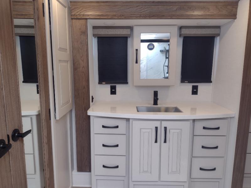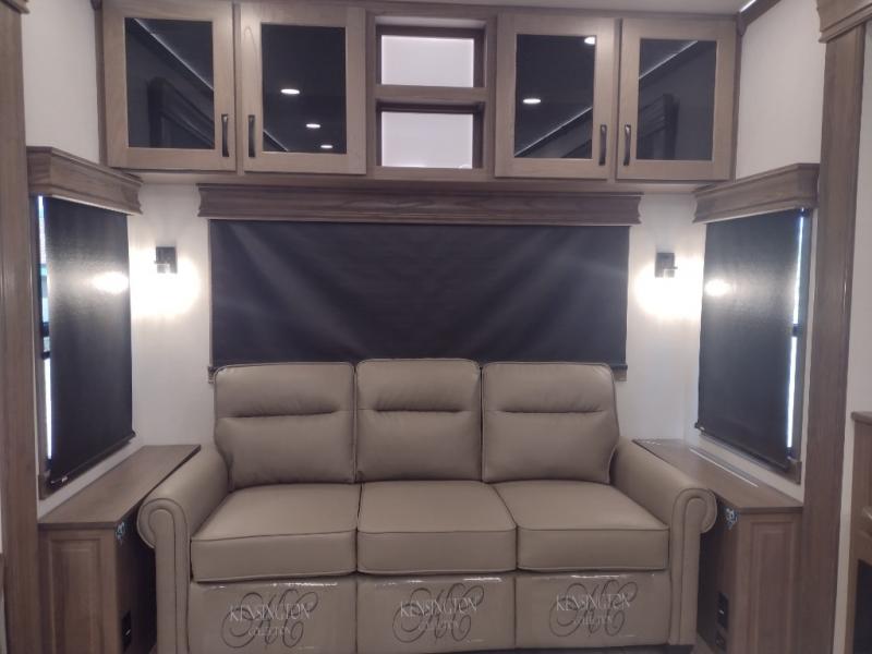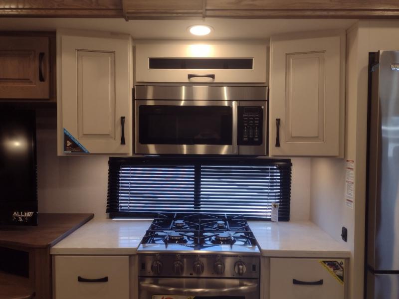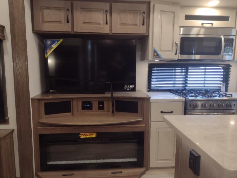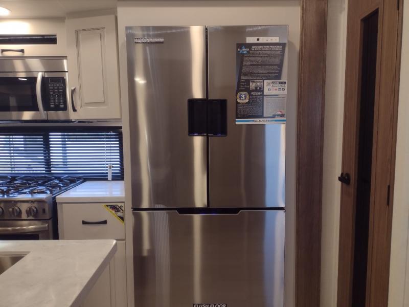 The Paradigm fifth wheels by Alliance RV are functional, high-quality, and luxurious for an unforgettable camping experience. There are three A/C units and a 40K BTU furnace to keep you comfortable year around, and you'll appreciate additional convenient amenities, like the all-in-one enclosed/heated utility center and the color coded and numbered wiring. A Rota-Flex pin box comes standard for hassle-free towing, along with Super-G 4,400 lb. rated tires and Dexter 7,000 lb. axles. You'll love the kitchen with its LG solid surface countertops and Insignia range, plus there is LED motion lighting in the pantry and a Maxx fan with a rain sensor to keep everything fresh when making dinner. Each model also includes an HD Smart TV in the living room and bedroom, plus a Winegard Air 360 antenna to keep you connected to the outside world. And of course there are a variety of options you can choose from to further customize your fifth wheel; dual pane windows, Super Solar Plus, slide out awning toppers, and generator prep or a generator to name a few!