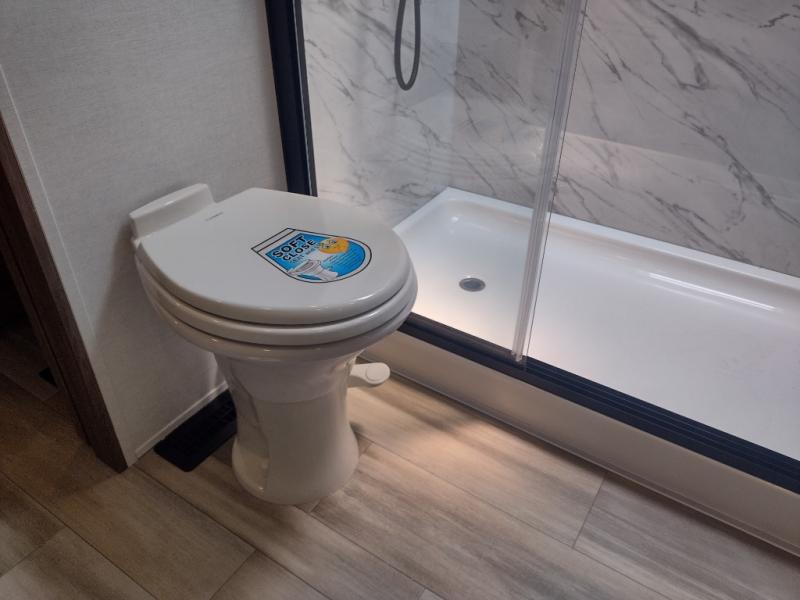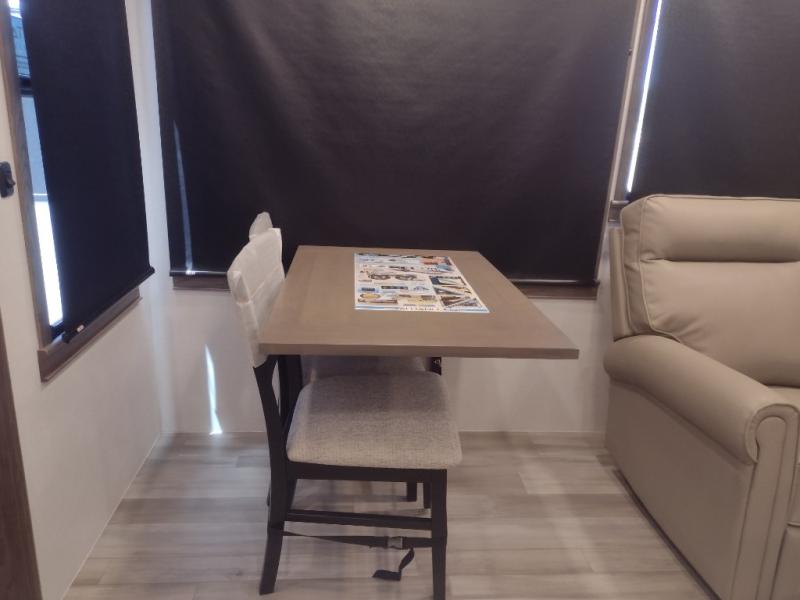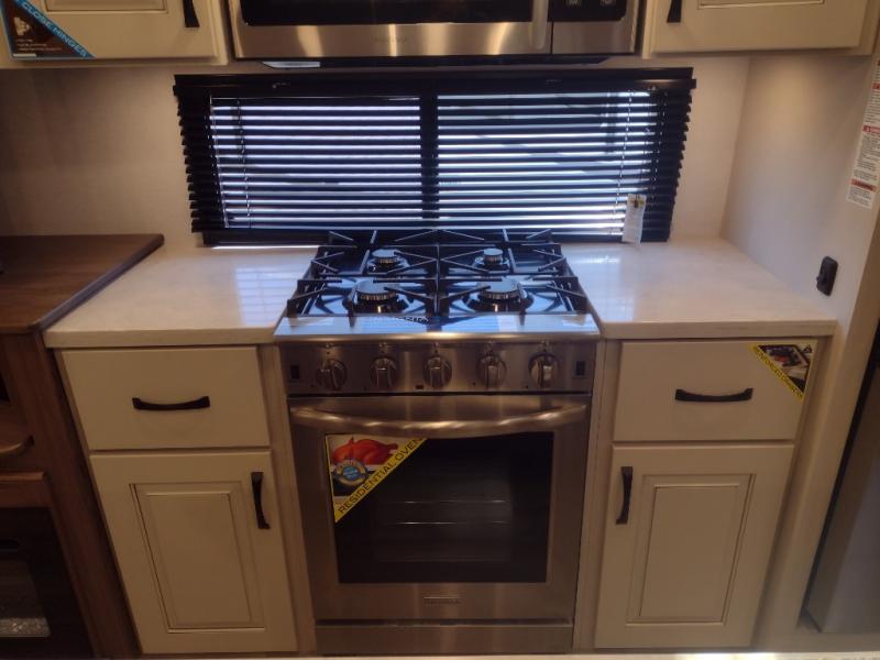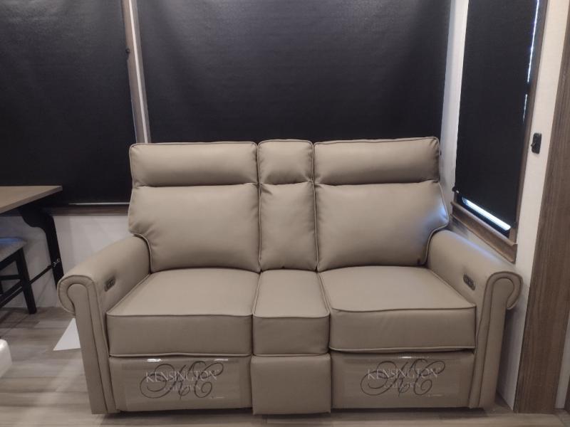 Whether you decide to be a full-timer or a long-trip traveler, this Paradigm offers so many comforts and conveniences you will love! The large full bathroom might be the reason you decide to be a new owner because you will have a large 61" x 30" shower to get cleaned up in, linen storage, and a walk-in closet with a hamper, shelves, and a space prepped for an optional washer/dryer. The bedroom allows you to sleep like a king and gives you extra floor space with the two slides, and there is storage in the flip-top dresser and under the seat, plus you can watch the Smart TV. The space saving sliding doors offer style as well. The cook will love all the residential appliances, including a residential refrigerator. The kitchen island gives you a large sink and dishwasher prep also. The half bath is super convenient just like the entry sitting bench/coat rack and closet. And you can relax on the sleeper sofa or the dual recliner love seat.