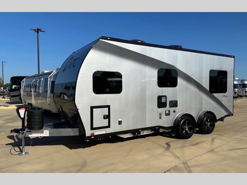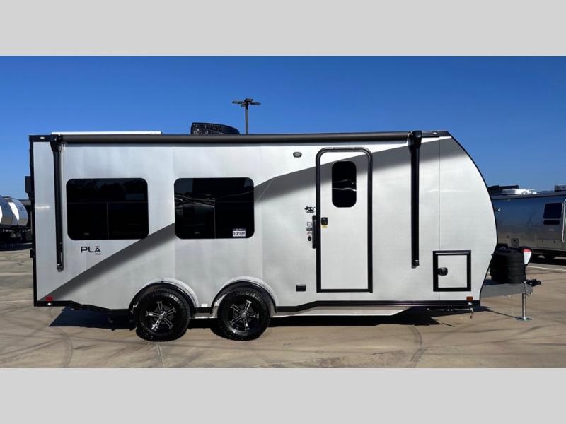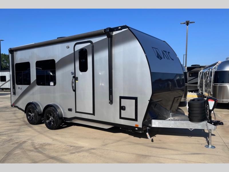 With any PLA 450 toy hauler travel trailer by ATC Trailers, you will enjoy lightweight towing and a configurable garage space for your toys, gear, and more! The all-aluminum and composite construction features no wood so you won't have to worry about rot, and the All-Weather Protection Package means you can extend your camping season. There is a 200-watt solar panel with a solar port, lithium battery prep, plus 12V outlets to keep your adventures going. Outside, you'll find storage for your gear, a power awning with a light strip, sleek frameless dual pane tinted windows, and more convenient features. The interior is just as accommodating with its dimmable ceiling lights throughout, decorative backsplash, configurable furniture track system, blackout roller shades, and the list of comforts goes on!