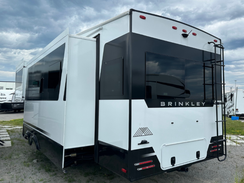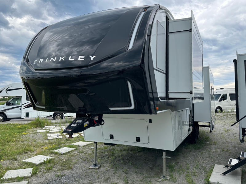 The Brinkley mid-profile Model Z fifth wheels bring you clean lines and an upscale look with plenty of style and exciting new features like the industry first brass plumbing connections. These units also feature an automotive grade front cap, plenty of exterior storage, dual exterior hot and cold showers, and wide stance leveling jacks for easy set up. Residential frameless windows provide a clean look and beautiful views, and ample electrical outlets and 6 USB/USB-C outlets allow all of your electronics and appliances to easily be used and charged. Even the bedside shelves and outlets are C-PAP machine ready if needed.