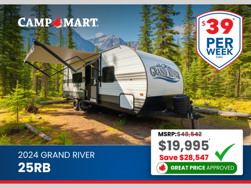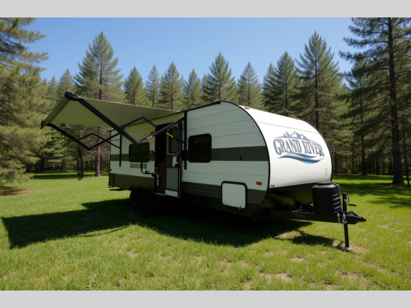 Travel light without giving up the good stuff. The 2024 Grand River Classic 25RB is a tow-friendly couples coach with a roomy rear bath, a relaxing lounge featuring a jack-knife sofa and booth dinette, and a walk-around queen bed up front. Dual axles provide added highway confidence, while camp-ready systems—tankless hot water, 20K BTU furnace, 13.5K BTU A/C, 30/36/36 gallon tanks, and a power awning—make every weekend smooth and low maintenance.
